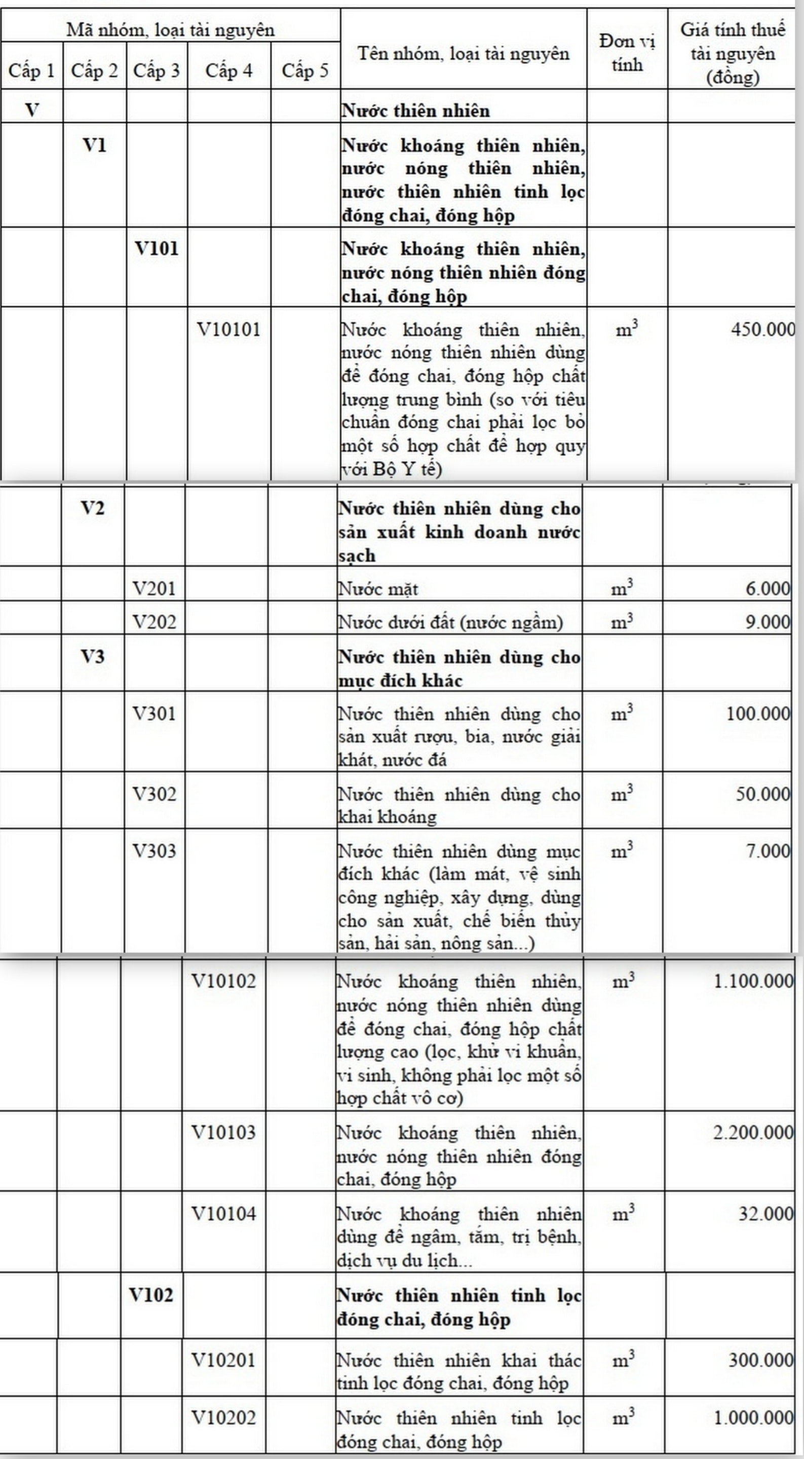 Bảng giá tính thuế TN ban hành theo quyết định gồm thuế TN đối với 5 nhóm: Khoáng sản không kim loại, sản phẩm rừng tự nhiên, hải sản tự nhiên, nước thiên nhiên, yến sào thiên nhiên.