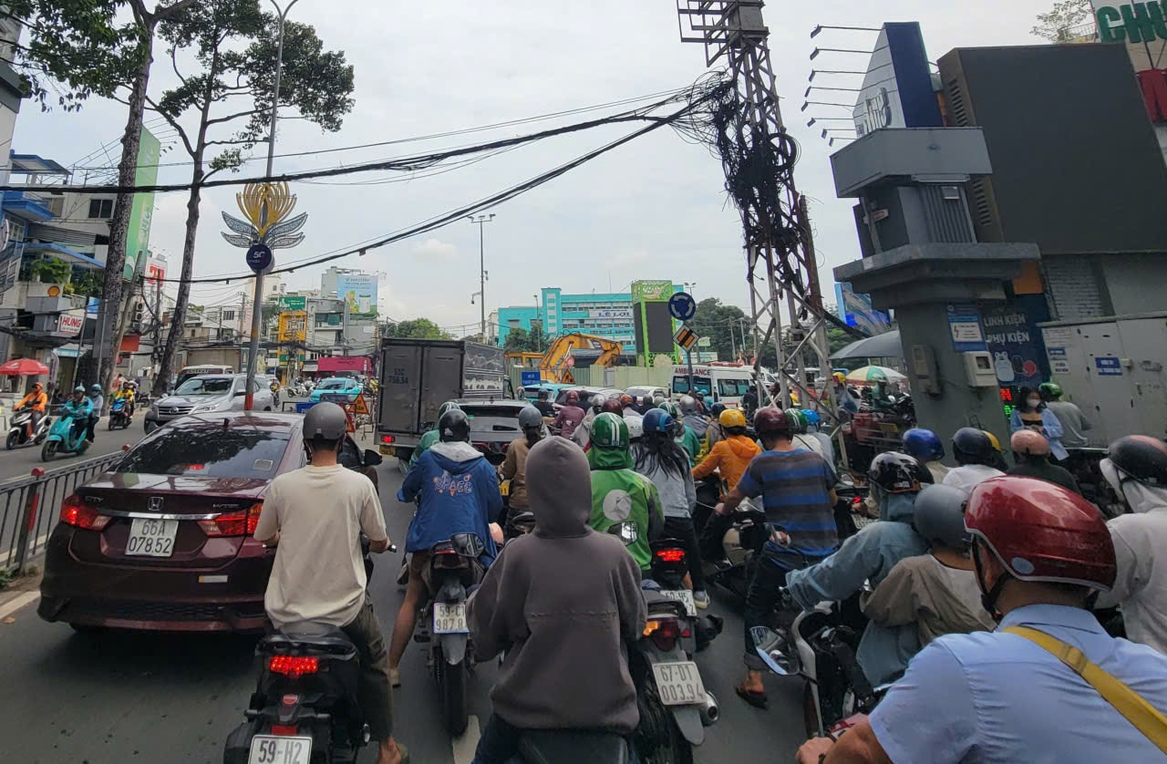 Tình trạng kẹt xe thường xuyên xảy ra tại khu vực vòng xoay đường Cách Mạng Tháng 8 và đường 3/2 nơi đang thi công tuyến metro số 2. Ảnh: Quang Phương chụp ngày 10/11