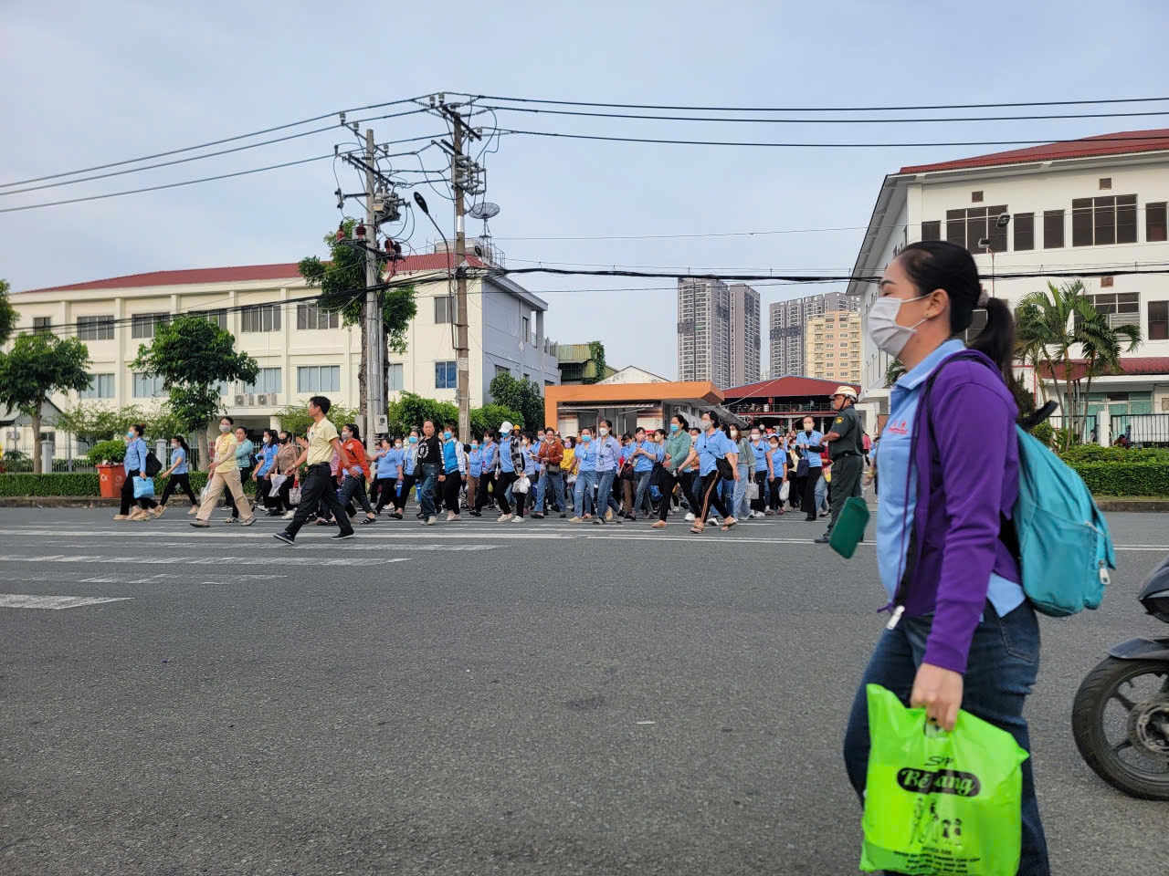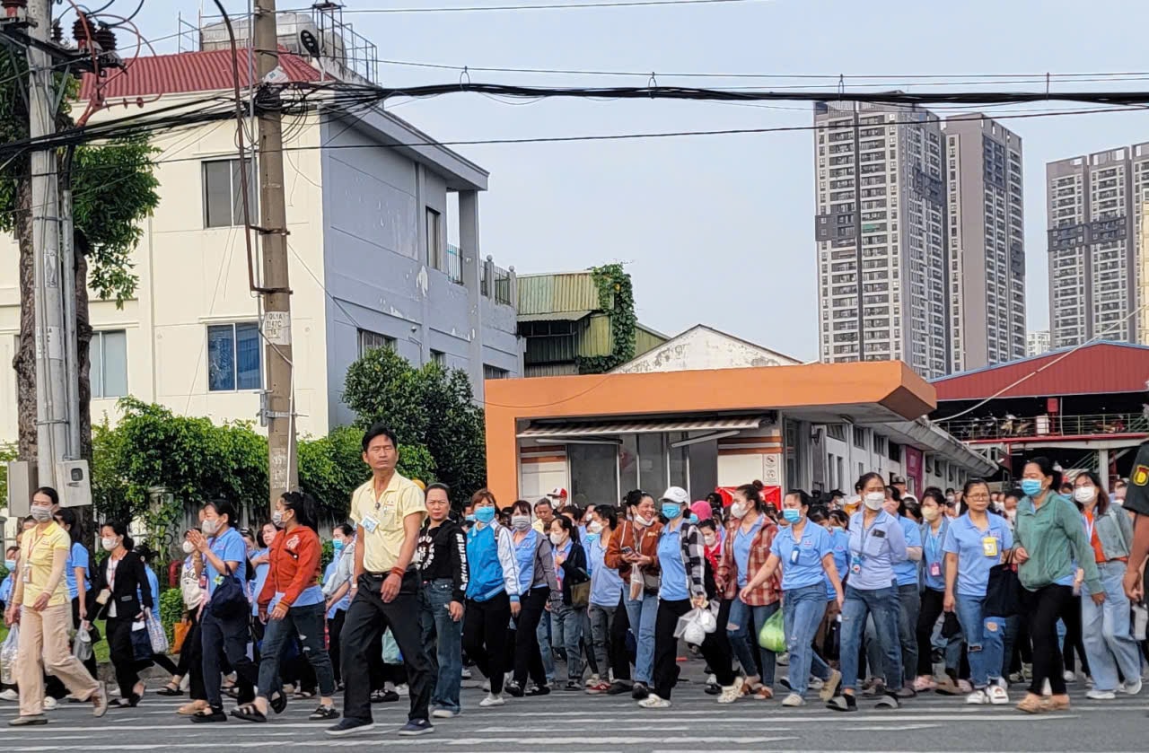 Công nhân tại một doanh nghiệp trong Khu chế xuất Linh Trung I đến nhà xưởng để chuẩn bị vào ca làm việc sáng 28/11. Ảnh: Quang Phương