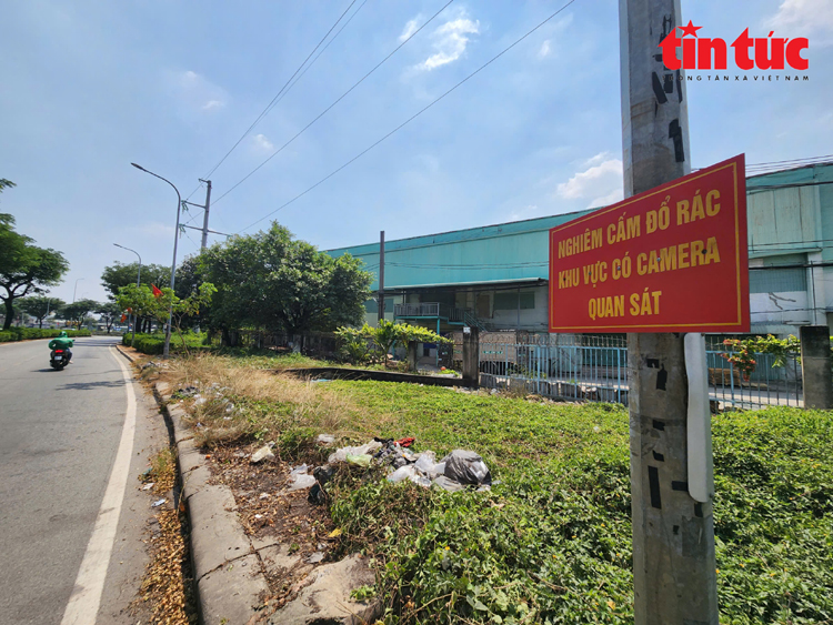 UBND phường Tân Tạo gắn biển báo khu vực cấm đổ rác và gắn camera giám sát, đồng thời thông báo mức xử phạt.