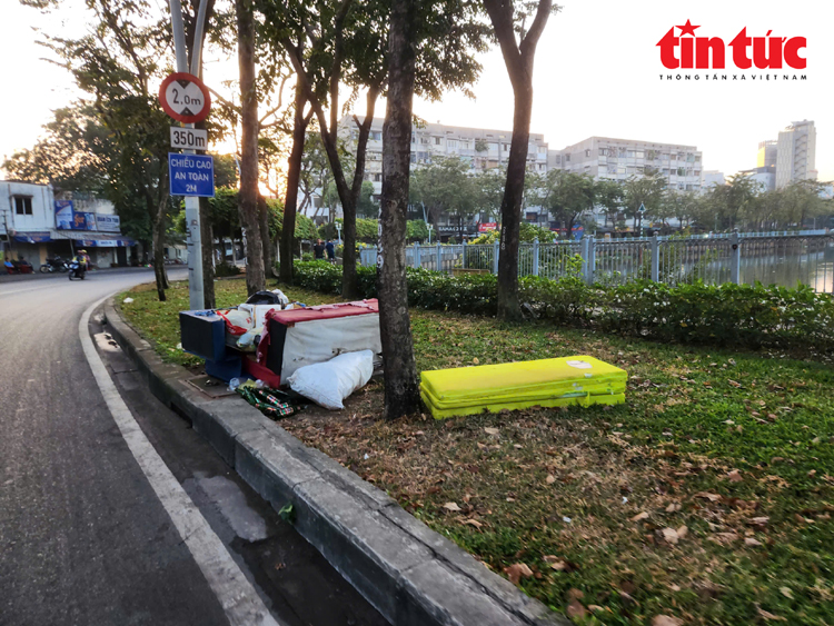 Nệm, bàn ghế cũ bị người dân bỏ trộm trên đường Trường Sa, đoạn gần cầu Hoàng Hoa Thám.