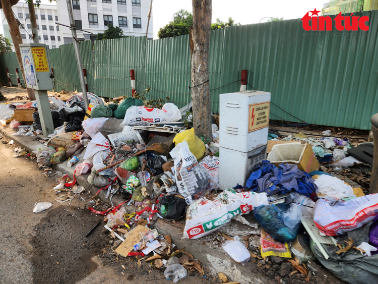 Đủ các loại rác thải bị đổ trộm tại khu vực Công trường Dân chủ - Cách Mạng Tháng 8.