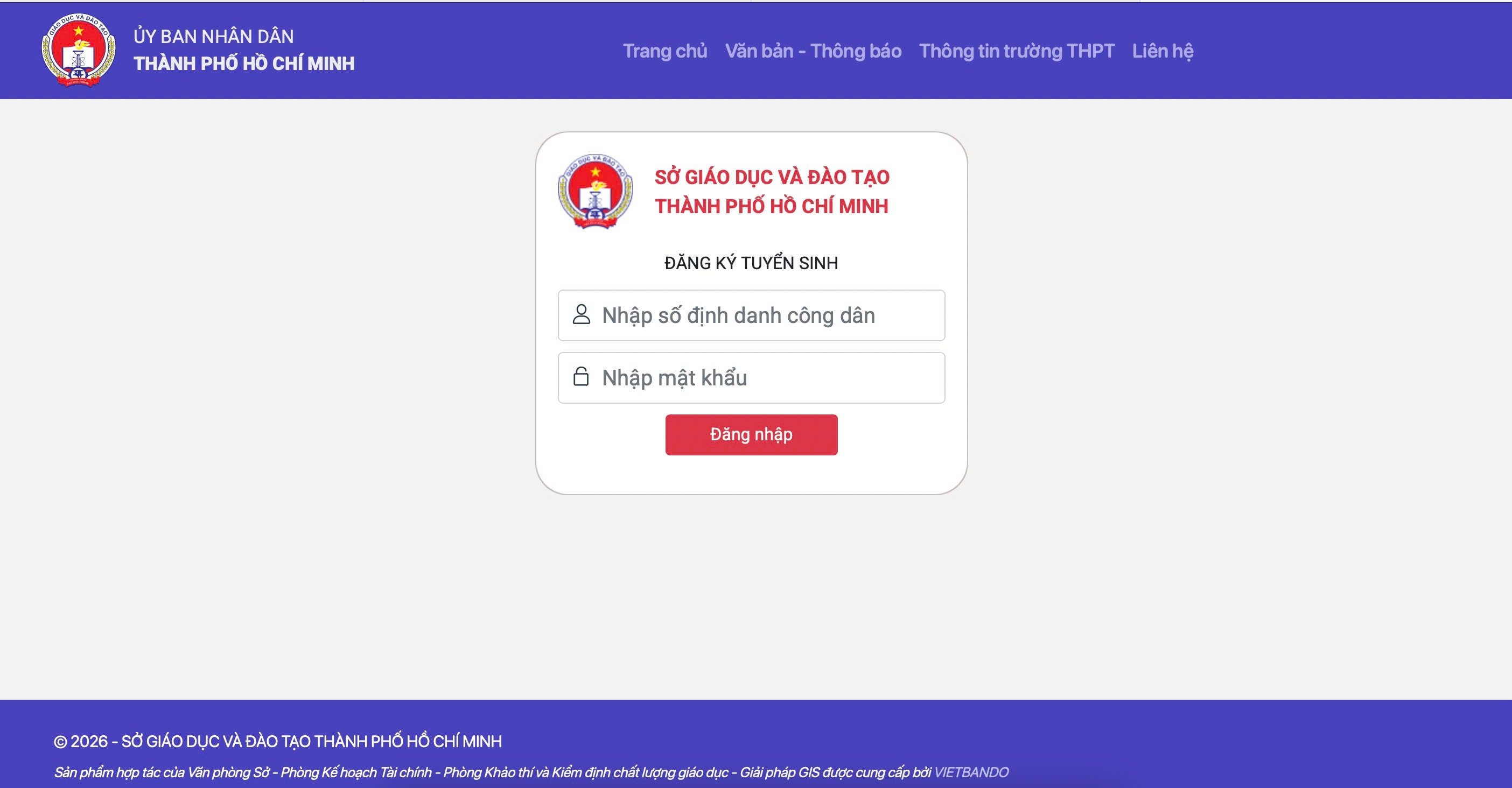 Theo Sở Giáo dục và Đào tạo (GD-ĐT) TP. Hồ Chí Minh, vào lúc 8h ngày 22/4, học sinh lớp 9 ở thành phố sẽ bắt đầu đăng ký nguyện vọng vào lớp 10 trực tuyến trên hệ thống tuyển sinh lớp 10 tại địa chỉ: https://ts10.hcm.edu.vn, và kéo dài đến 17h ngày 28/4.