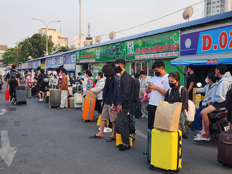 Ghi nhận của phóng viên Báo Tin tức và Dân tộc vào chiều cùng ngày tại Bến xe Miền Đông, Bến xe Miền Đông mới, Ga Sài Gòn và Sân bay Tân Sơn Nhất, hành khách lỉnh kỉnh hành lý chờ làm thủ tục. Khu vực sảnh chờ, bãi đón - trả khách và quầy check-in luôn nhộn nhịp, tạo nên không khí đặc trưng những ngày giáp Tết.