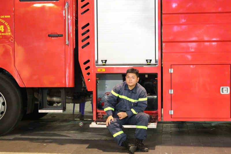 Lực lượng chức năng ứng trực xuyên đêm tại các điểm bắn pháo hoa để đảm bảo an toàn tuyệt đối cho người dân vui chơi trong thời khắc chuyển giao năm mới. Ảnh: Minh Anh