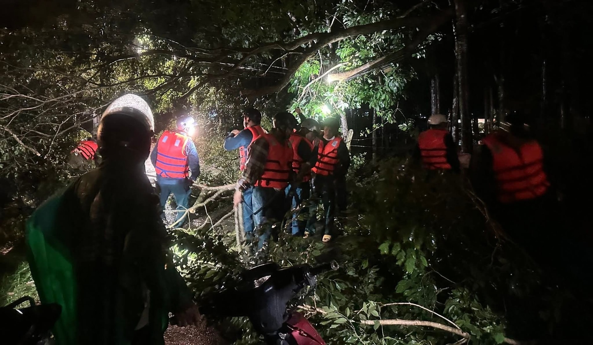 Tại các khu phố Xốm Lẫm, phường Tây Nam (TP. Hồ Chí Minh), do ảnh hưởng của triều cường kết hợp mưa lớn, nhiều tuyến đường và khu dân cư có cây đổ chắn lối đi lại trong tối 24-10. Ngay sau khi nhận được tin báo, Ban Chỉ huy quân sự phường Tây Nam đã huy động cán bộ, chiến sĩ phối hợp với lực lượng công an triển khai hỗ trợ nhân dân. Các lực lượng tổ chức cưa cây và thu dọn cây đổ.