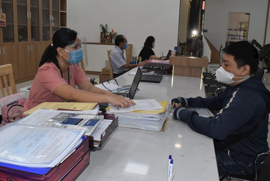 Lực lượng CB-CC-VC (phải) tham gia giải quyết các thủ tục hành chính cho người dân