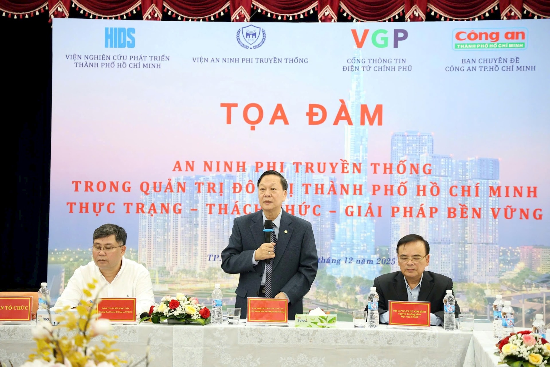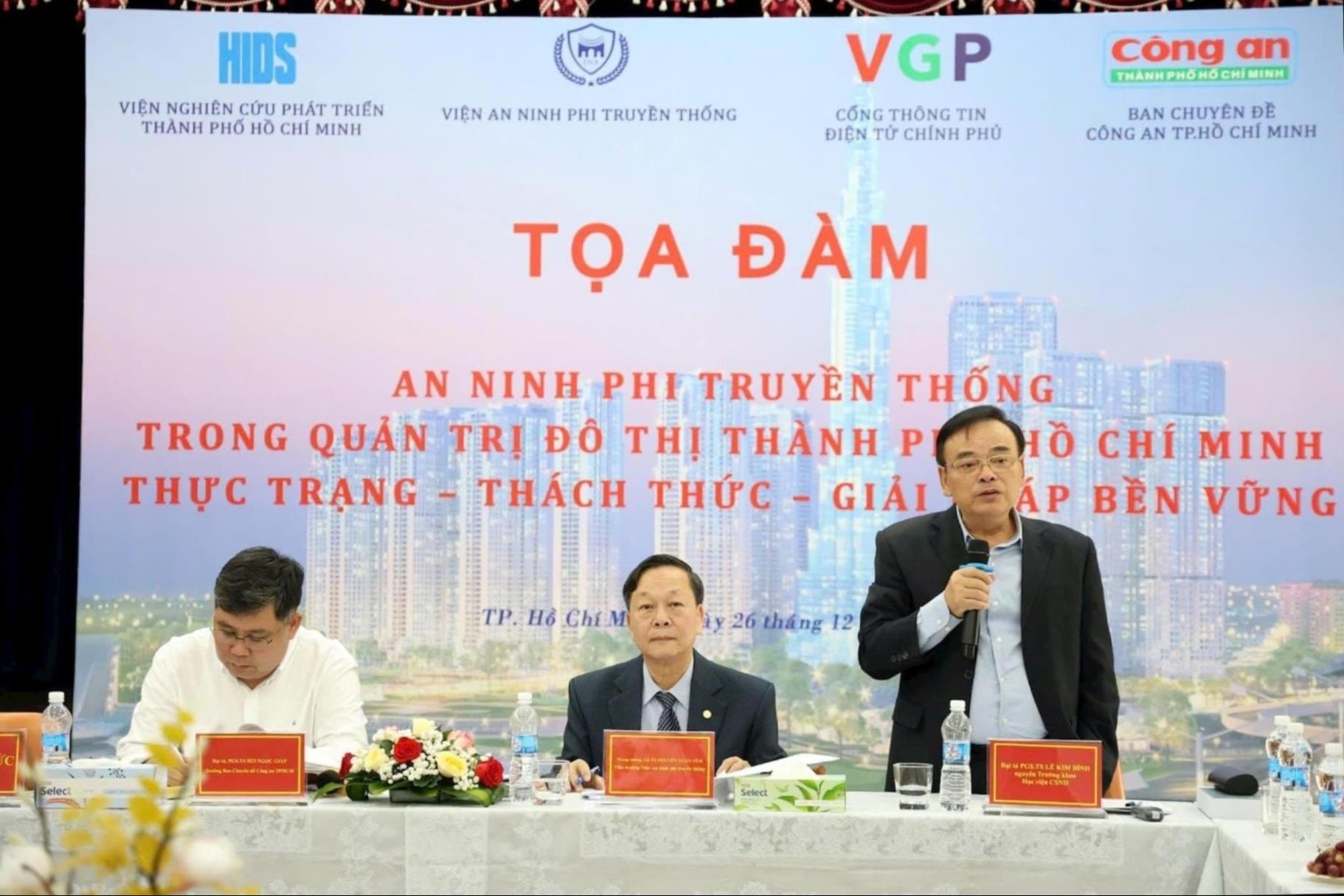 Phát biểu kết luận buổi tọa đàm, Trung tướng, GS.TS Nguyễn Xuân Yêm (Viện trưởng Viện An ninh phi truyền thống) cho biết, tọa đàm là một dấu mốc quan trọng, cung cấp những luận cứ khoa học và thực tiễn quý báu, góp phần hỗ trợ công tác hoạch định chính sách với cơ sở lý luận, khoa học và công nghệ vững chắc cho việc triển khai nhanh và hiệu quả các chính sách, chiến lược, chương trình, dự án để giải quyết các vấn đề ùn tắc giao thông, ngập lụt/triều cường, ô nhiễm môi trường, phòng chống ma túy… nâng cao hiệu lực, hiệu quả quản trị đô thị, hướng tới xây dựng một thành phố Hồ Chí Minh an toàn, thông minh, bền vững và có khả năng thích ứng cao, xứng đáng là một siêu đô thị của cả nước, một thành phố sáng tạo, xanh, sạch, đẹp, văn minh, hiện đại, nghĩa tình.