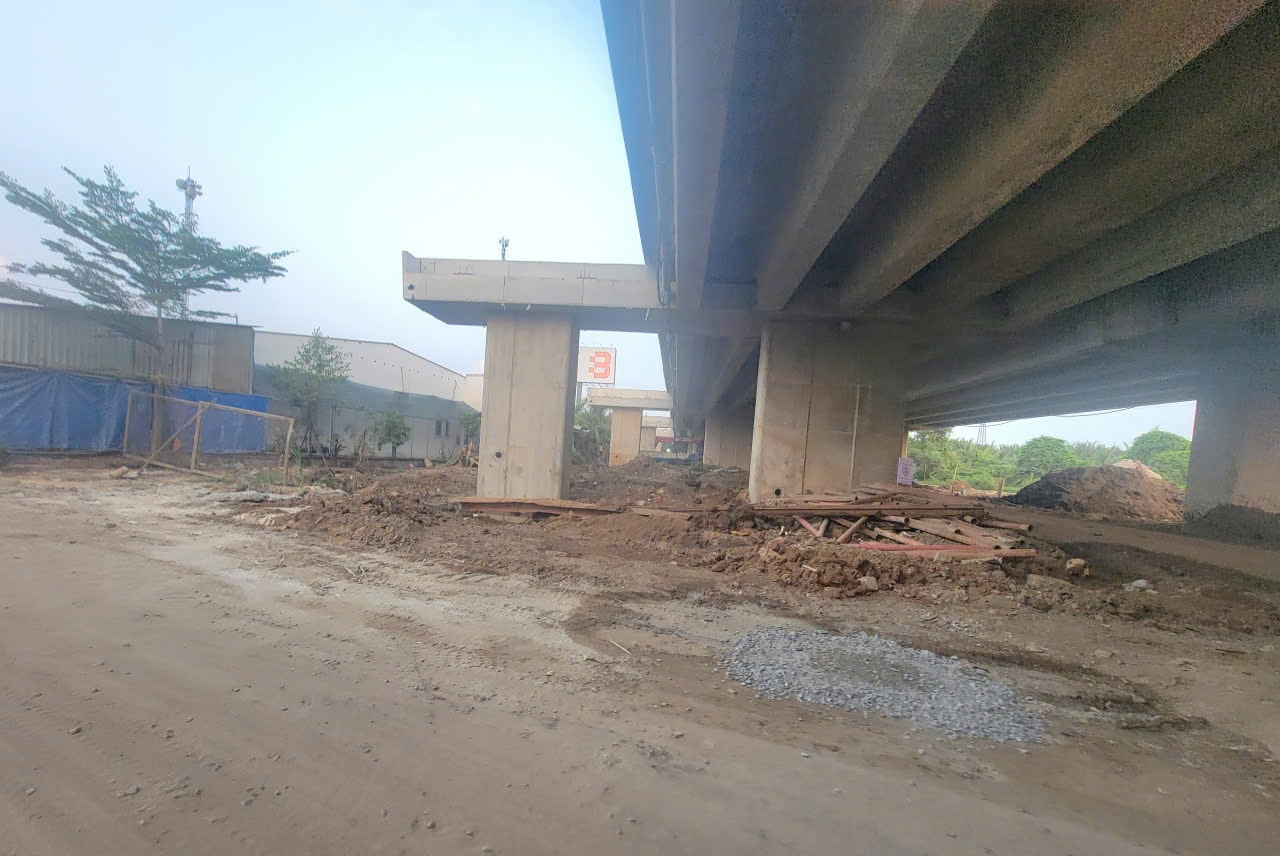 Công trường thi công Dự án mở rộng đường cao tốc TP. Hồ Chí Minh – Long Thành (đoạn cắt ngang đường Trường Lưu, phường Long Trường). Ảnh: Quang Phương chụp sáng 19/4