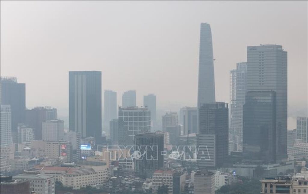 Các tòa nhà cao tầng chìm trong sương mù, mờ ảo do bụi mịn tại khu vực trung tâm Thành phố Hồ Chí Minh (ảnh tư liệu).