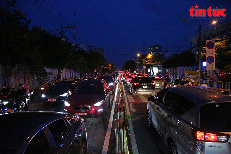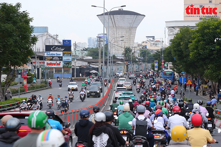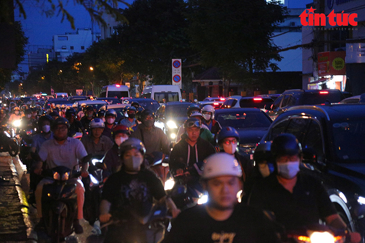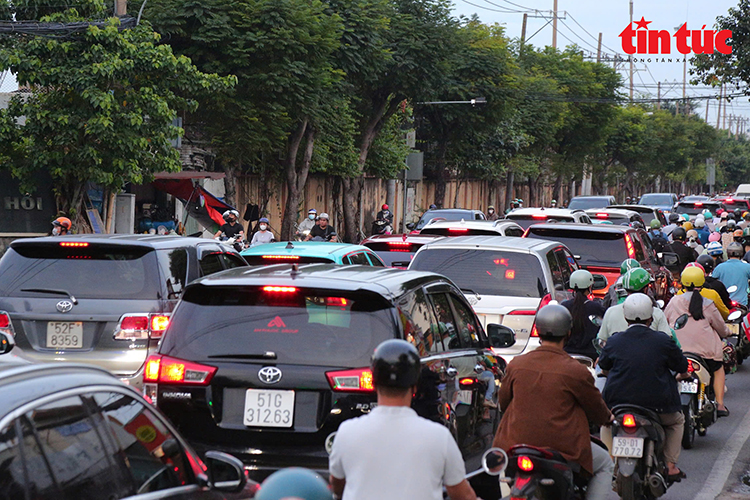 Ghi nhận của phóng viên báo Tin tức và Dân tộc tại vào khung giờ cao điểm chiều tối, đường Nguyễn Tất Thành từ cầu Khánh Hội hướng về cầu Tân Thuận 1 và chiều ngược lại, dòng xe ken đặc kéo dài hàng trăm mét, di chuyển chậm khiến việc đi lại của người dân hết sức khó khăn.