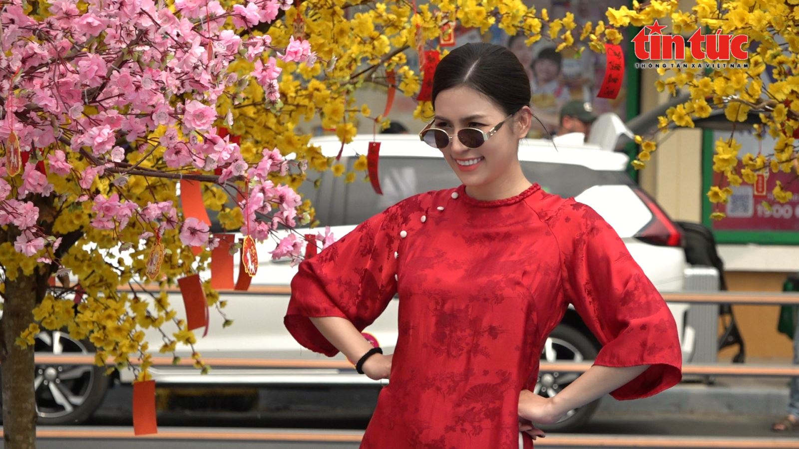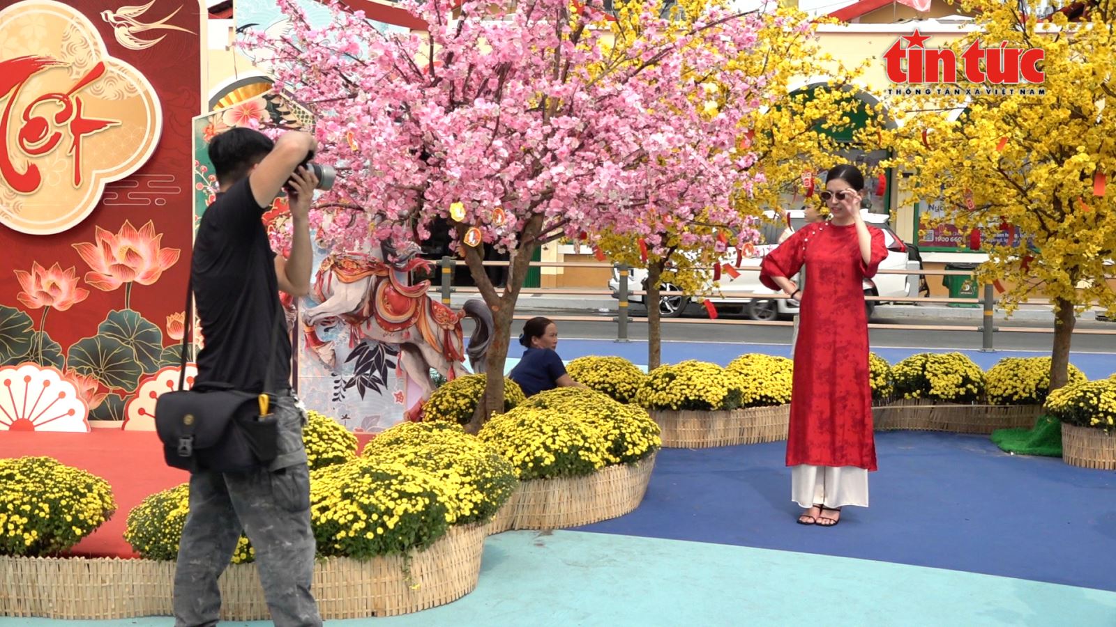 Các chị em diện áo dài đến chụp hình check-in, tạo nên những hình ảnh duyên dáng giữa không gian mới của khu vực chợ Bến Thành.