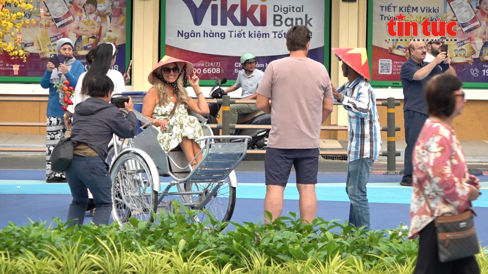 Du khách nước ngoài cũng thích thú hòa mình vào không gian sôi động và mới mẻ tại khu vực trước chợ Bến Thành.