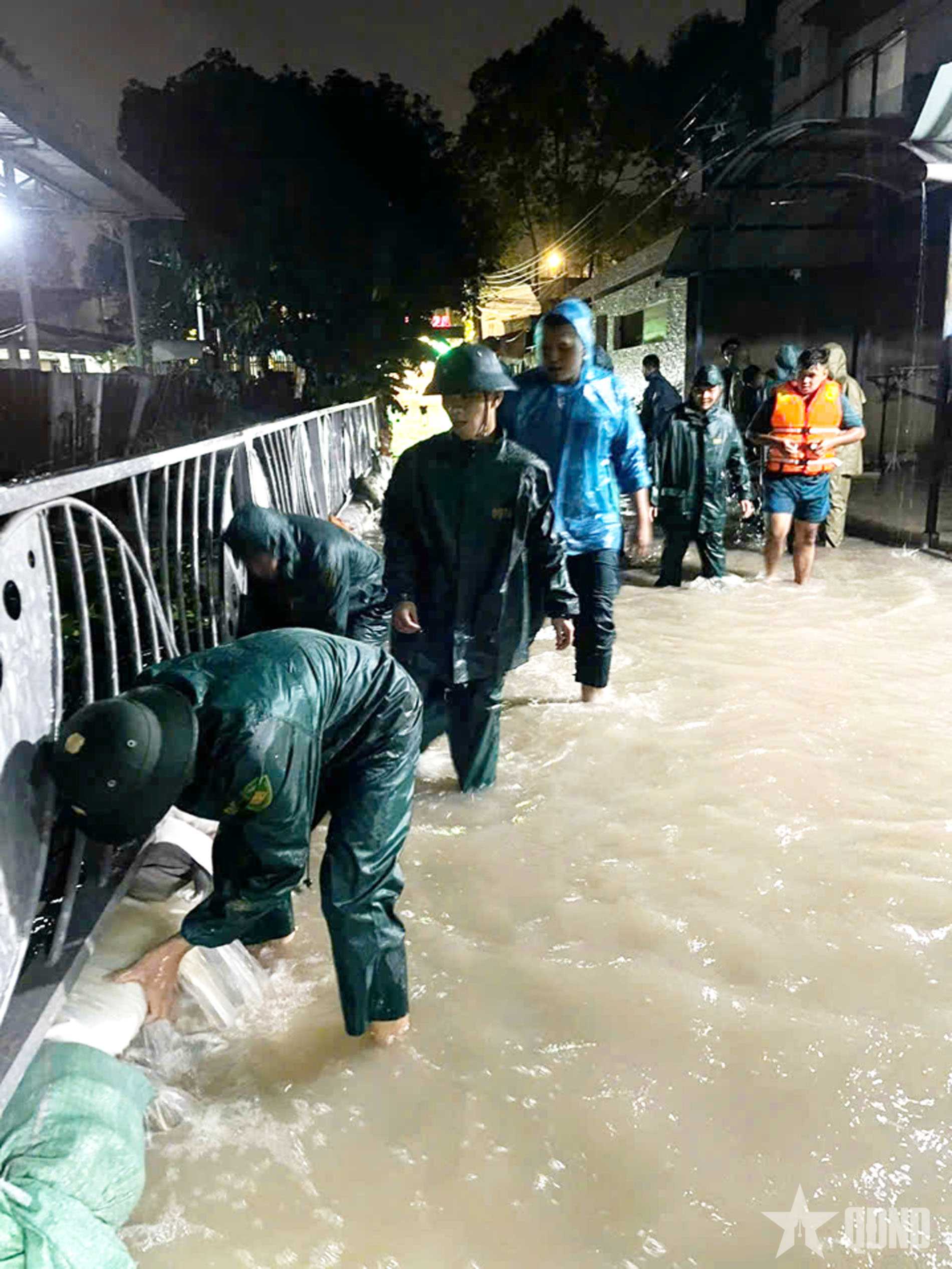 Dân quân phường Thủ Dầu Một, TP Hồ Chí Minh đắp bờ bao ngăn nước do triều cường kết hợp mưa lớn.