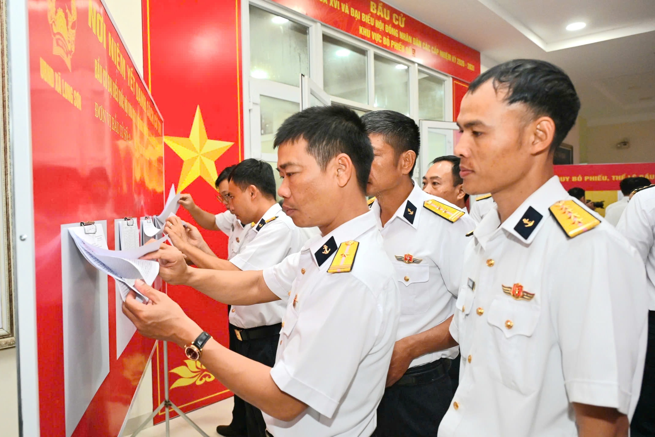 Cử tri là cán bộ, chiến sĩ thuộc Bộ Tư lệnh Vùng 2 Hải quân xem thông tin danh sách cử tri. Ảnh: Thạc Hiếu