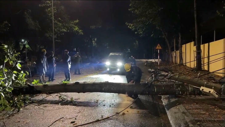 Tại một số vị trí, cây xanh ngã đổ đã kéo ngã cột điện, đè lên xe máy. Chính quyền địa phương đã trực tiếp có mặt tại các tuyến đường trong tối cùng ngày để chỉ đạo khắc phục hậu quả thiên tai.