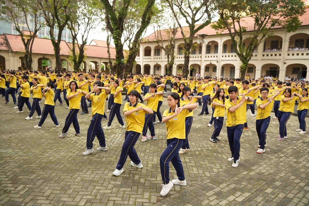 Trong đó, 5.000 học sinh sẽ đồng diễn trực tiếp tại Công viên Bờ sông, phường An Khánh. 45.000 học sinh còn lại tham gia đồng diễn trực tuyến tại 150 điểm trường khác nhau.