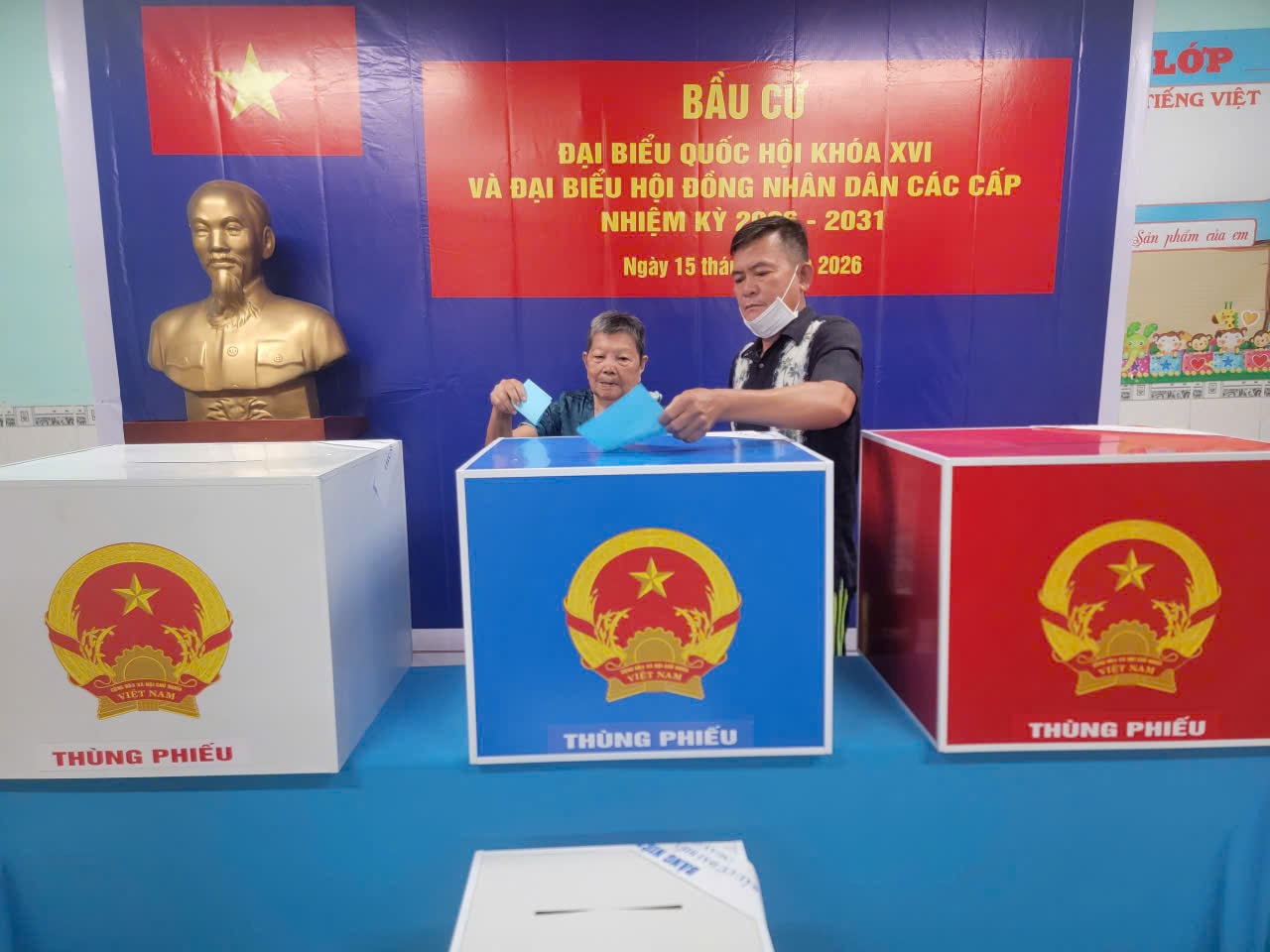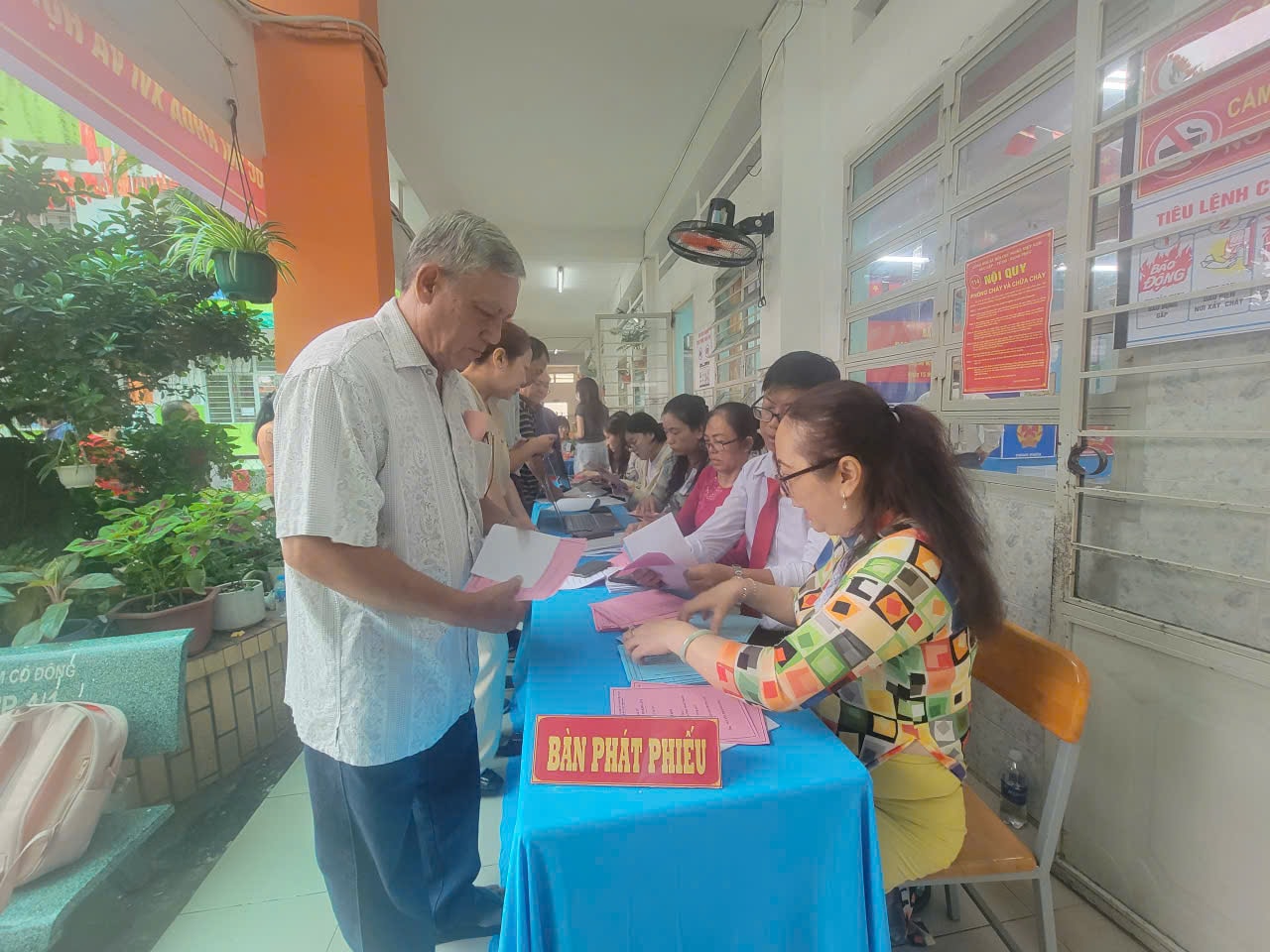Ông Nguyễn Long Sơn, Tổ trưởng Tổ Bầu cử số 52 (phường Chánh Hưng) cho biết, tại điểm bỏ phiếu Trường Tiểu học Vàm Cỏ Đông có tổng 2.389 cử tri.