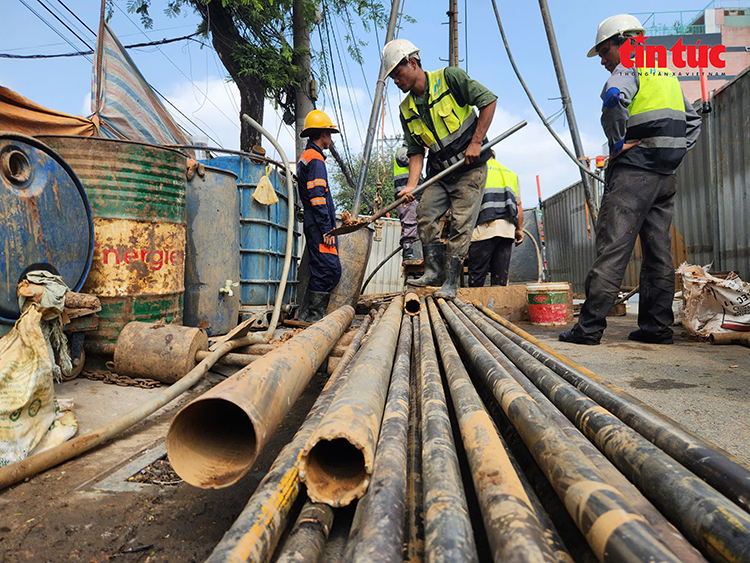 Tại khu vực ga ngầm Nguyễn Hồng Đào trên đường Trường Chinh, công nhân đang khẩn trương triển khai khoan thăm dò. Anh Trần Thanh Toàn, phụ trách tổ khoan số 36 cho biết: “Vị trí này khoan sâu khoảng 96 m, dự kiến hoàn thành trong 3 - 4 ngày. Tổ được tăng cường 7 người, làm việc luân phiên liên tục từ sáng đến 22 giờ đêm để rút ngắn thời gian, bảo đảm tiến độ chung của dự án trong điều kiện thời tiết nắng nóng”.