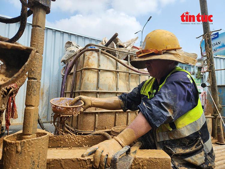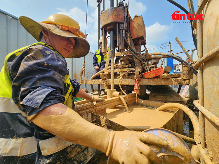 Theo kỹ sư Trần Quốc Hưng, đơn vị giám sát địa kỹ thuật dự án, hiện công tác khoan đang tập trung tại các khu vực nhà ga trước, sau đó sẽ triển khai tại các đoạn giữa hai ga. Trên toàn tuyến hiện có khoảng 20 tổ máy với khoảng 100 nhân sự thi công liên tục. Những vị trí khoan sâu trên 100m thường mất 5 - 6 ngày, còn độ sâu khoảng 40m mất 2 - 3 ngày.