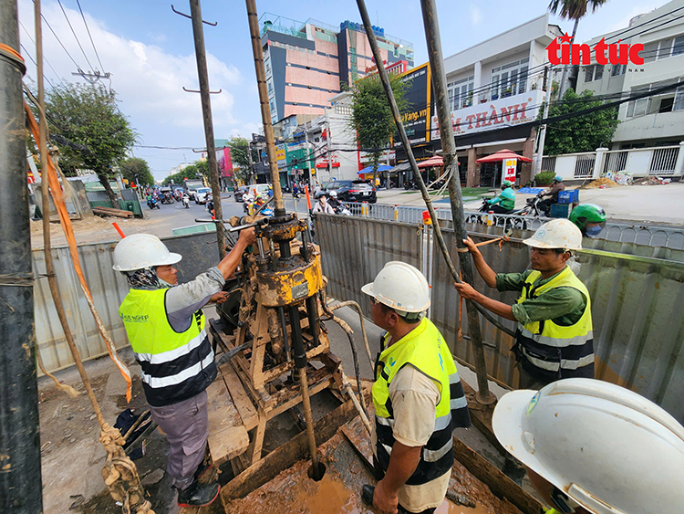 Theo ghi nhận của phóng viên Báo Tin tức và Dân tộc, những ngày qua, trên tuyến Cách Mạng Tháng Tám - Trường Chinh dài khoảng 9 km, đi qua nhiều phường, có khoảng 20 điểm đang triển khai khoan thăm dò địa chất nhằm xác định điều kiện địa chất, nền đất phục vụ thi công tuyến metro số 2.