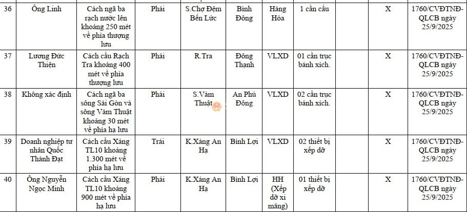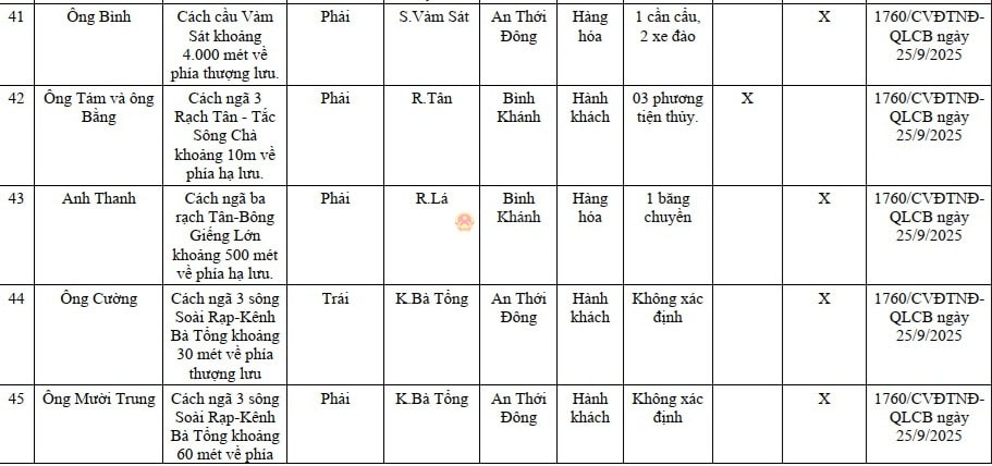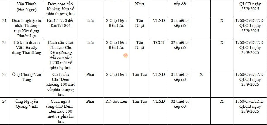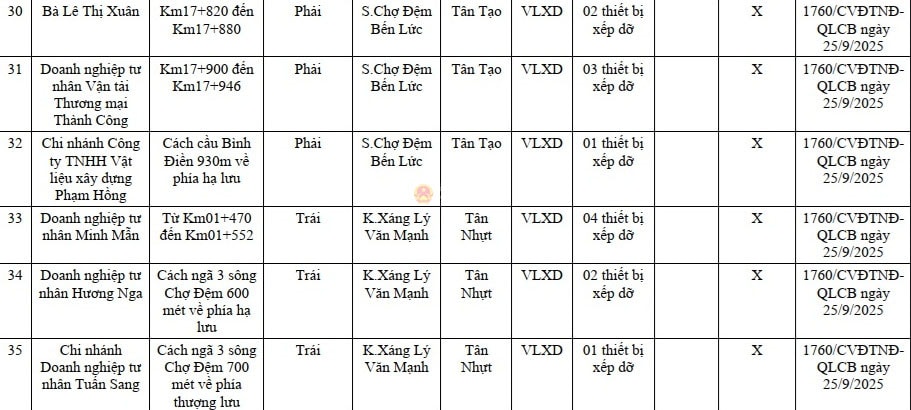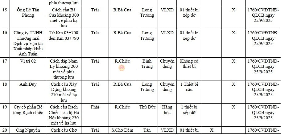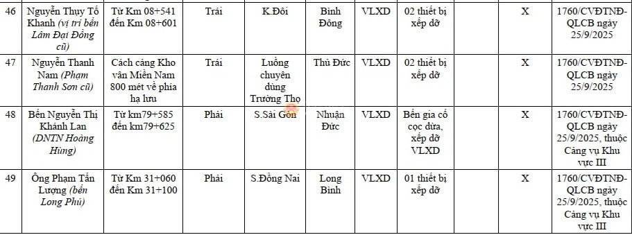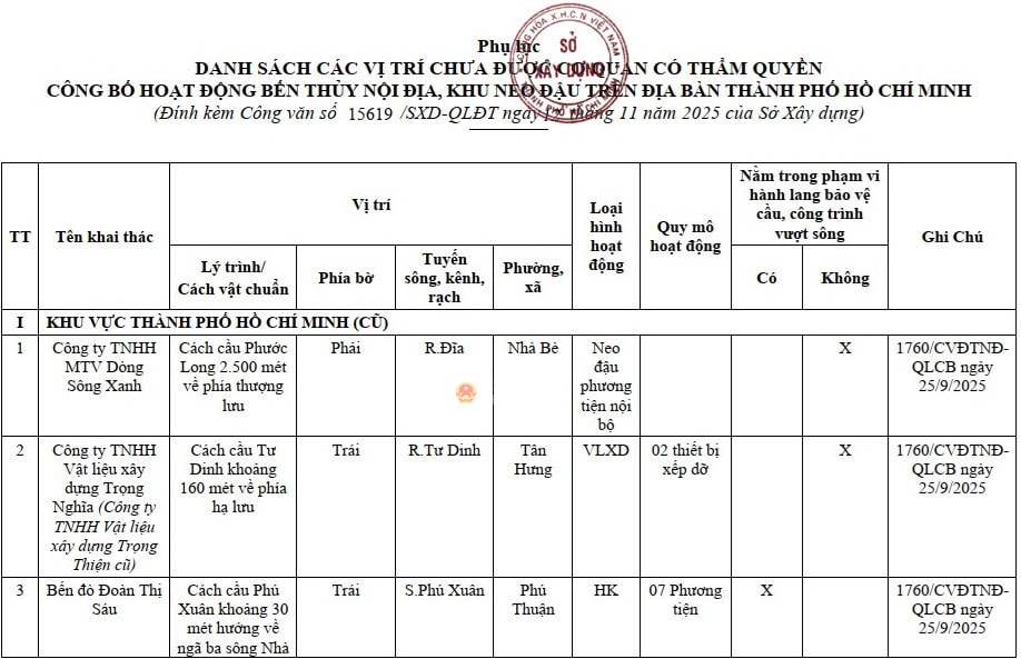 Danh sách 50 bến thủy nội địa, vị trí neo đậu (1 vị trí hình phía dưới) trên địa bàn TP. Hồ Chí Minh (cũ) chưa được cơ quan có thẩm quyền công bố hoạt động. Ảnh: Quang Phương