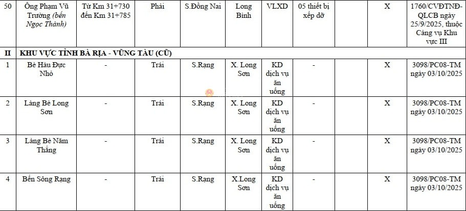Danh sách 9 bến thủy nội địa, vị trí neo đậu trên địa bàn tỉnh Bà Rịa - Vũng Tàu (cũ) chưa được cơ quan có thẩm quyền công bố hoạt động. Ảnh: Quang Phương