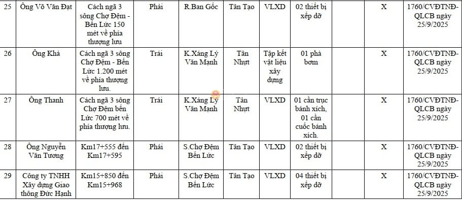 Chỉ đạo các lực lượng chức năng tăng cường công tác kiểm tra xử phạt vi phạm hành chính theo thẩm quyền, chịu trách nhiệm xử lý triệt để các bến thủy nội địa, khu neo đậu chưa được công bố hoạt động; các trường hợp vi phạm lấn chiếm sông, kênh, rạch trên địa bàn quản lý. Có biện pháp tổ chức cưỡng chế đối với các trường hợp vi phạm nhằm xử lý triệt để hành vi vi phạm lấn chiếm sông, kênh, rạch và hoạt động bến thủy nội địa, khu neo đậu sai quy định.