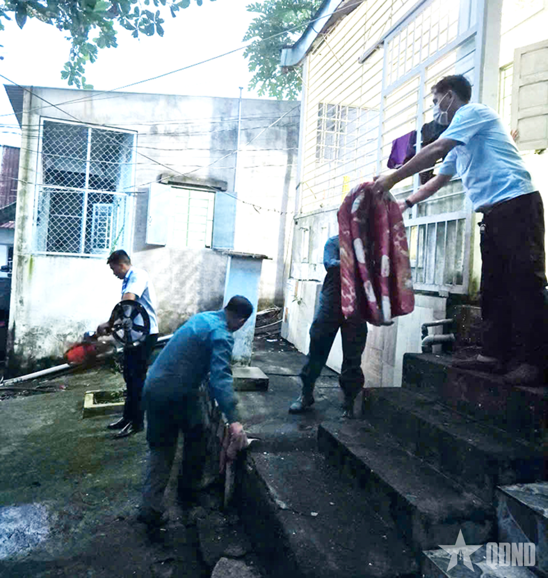 Ban CHQS phường Vũng Tàu điều động 15 cán bộ, chiến sĩ phối hợp với các lực lượng và tổ dân phố đến từng nhà vận động, hỗ trợ người dân thu dọn tài sản, di chuyển đến nơi an toàn.