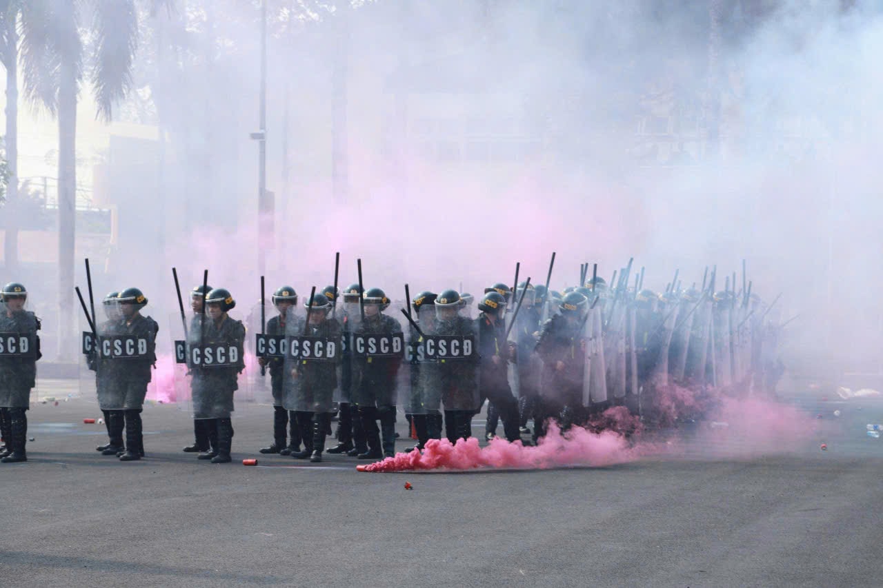 Luyện tập trấn áp bạo loạn. Ảnh: V.Dũng.