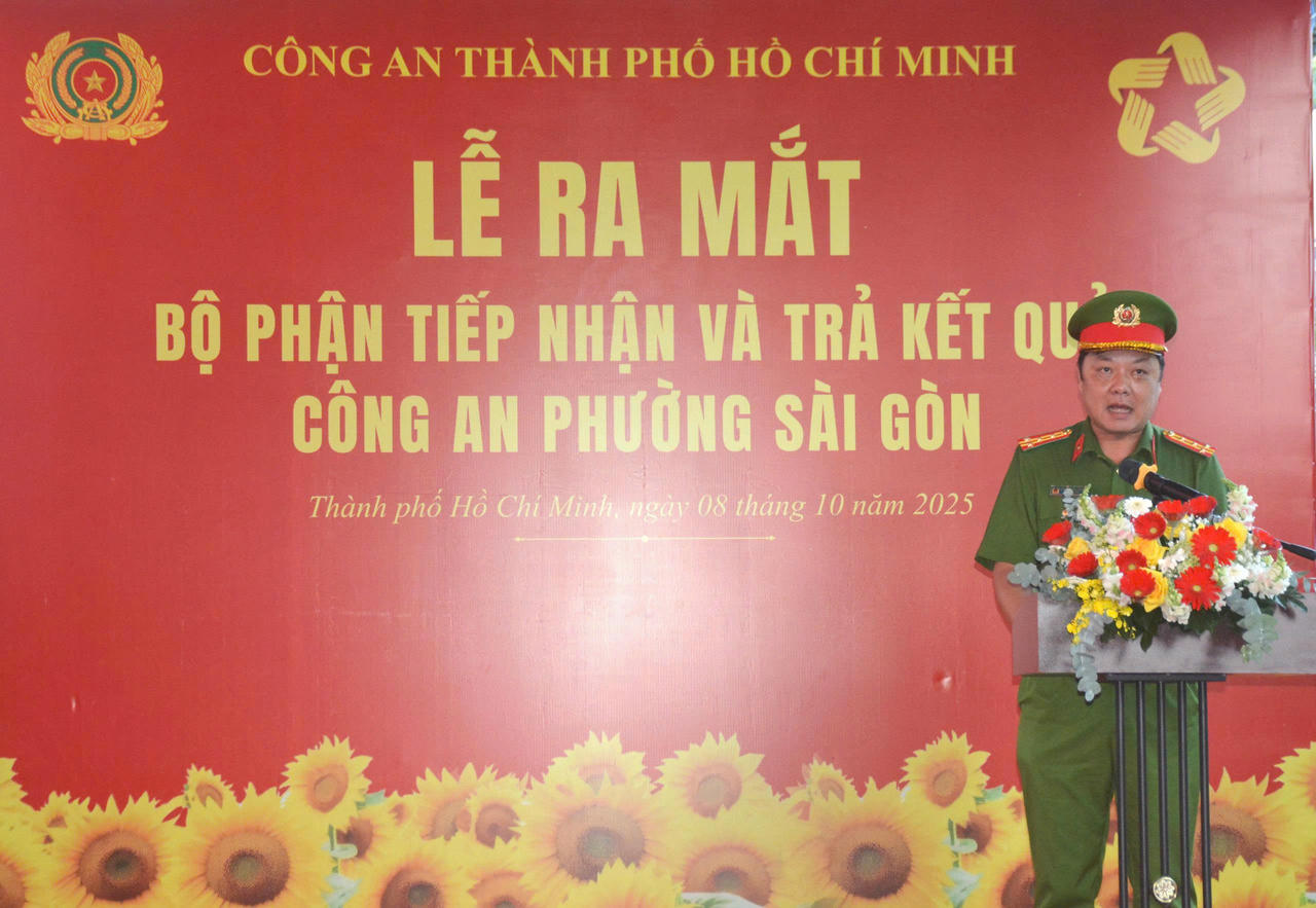 Đại diện lãnh đạo Công an TP Hồ Chí Minh dự Lễ ra mắt Bộ phận tiếp nhận và trả kết quả Công an phường Sài Gòn. Ảnh: H.Phúc.