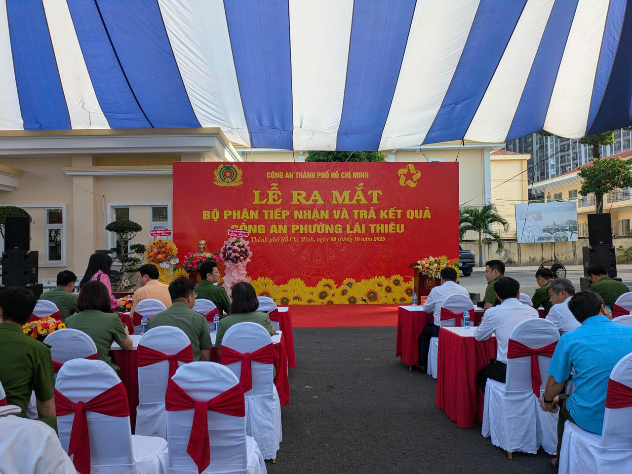 Lễ ra mắt bộ phận tiếp nhận và trả kết quả Công an phường Lái Thiêu. Ảnh: CA.