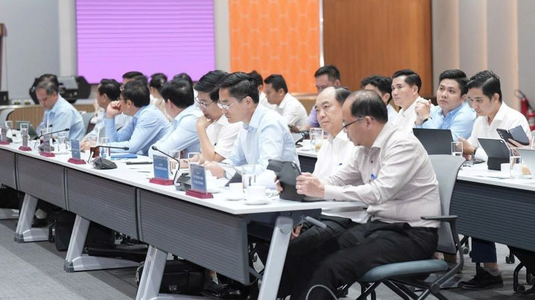 Lãnh đạo Thành phố Hồ Chí Minh và lãnh đạo Tập đoàn Becamex trao đổi thông tin về các tuyến đường sắt nhanh.