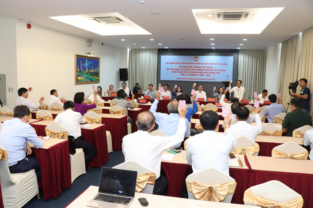 * Cũng trong chiều 10/2, Ban Thường trực Ủy ban Mặt trận Tổ quốc Việt Nam Thành phố đã tổ chức hội nghị hiệp thương lần thứ ba để lựa chọn, lập danh sách những người đủ tiêu chuẩn ứng cử đại biểu HĐND TP. Hồ Chí Minh khóa XI, nhiệm kỳ 2026 - 2031.