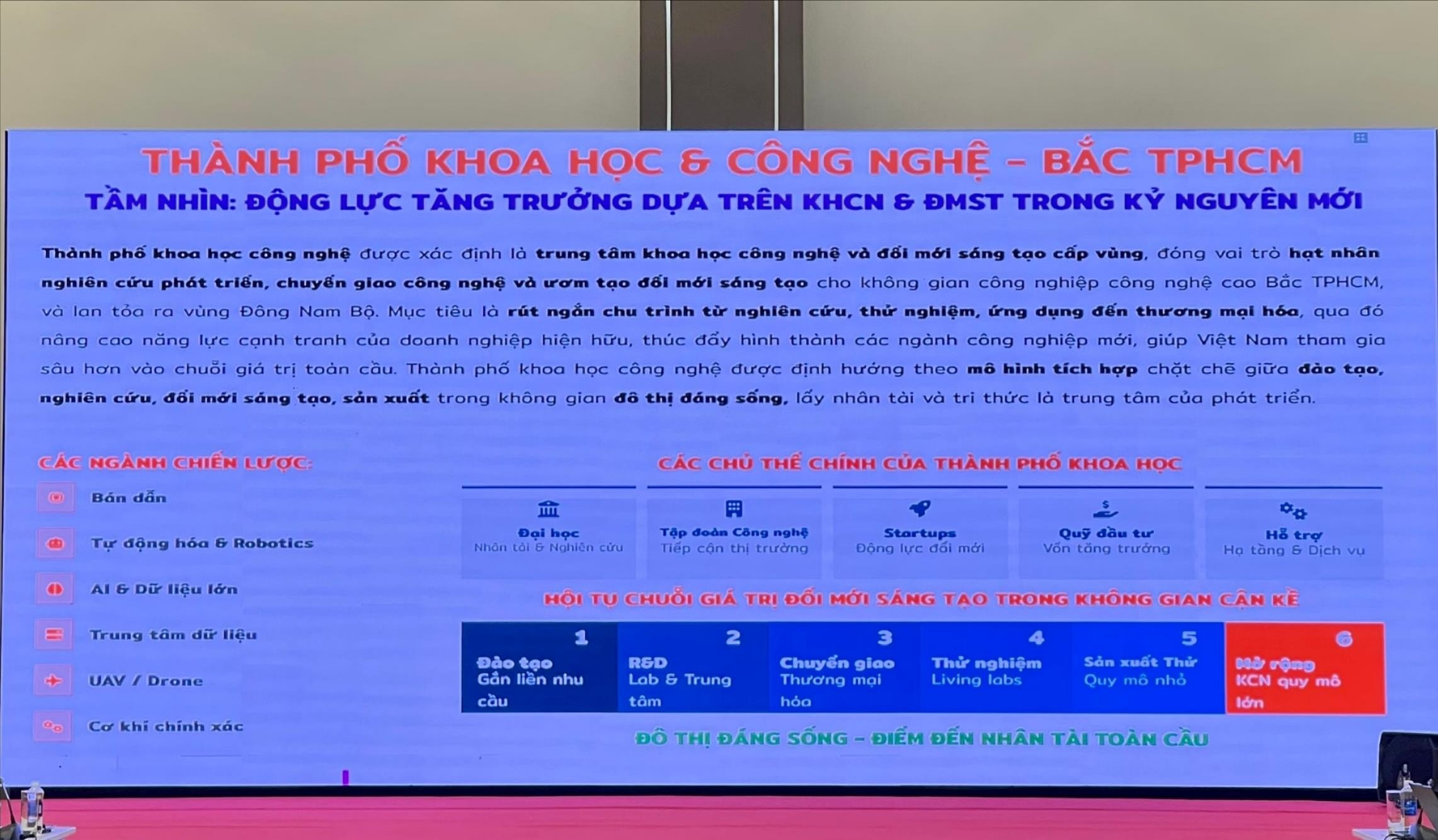 Đề án được xây dựng trong bối cảnh TP. Hồ Chí Minh đang mở rộng không gian phát triển sau sáp nhập, hướng tới mô hình siêu đô thị đa cực, trong đó mỗi khu vực được phân vai chức năng rõ ràng, có sự liên kết và cộng hưởng lẫn nhau. Trên cơ sở đó, Đô thị Khoa học Công nghệ phía Bắc được xác định là một cực khoa học công nghệ – đổi mới sáng tạo mới, đóng vai trò “bộ não” nghiên cứu – phát triển của vùng sản xuất công nghệ cao phía Bắc Thành phố.