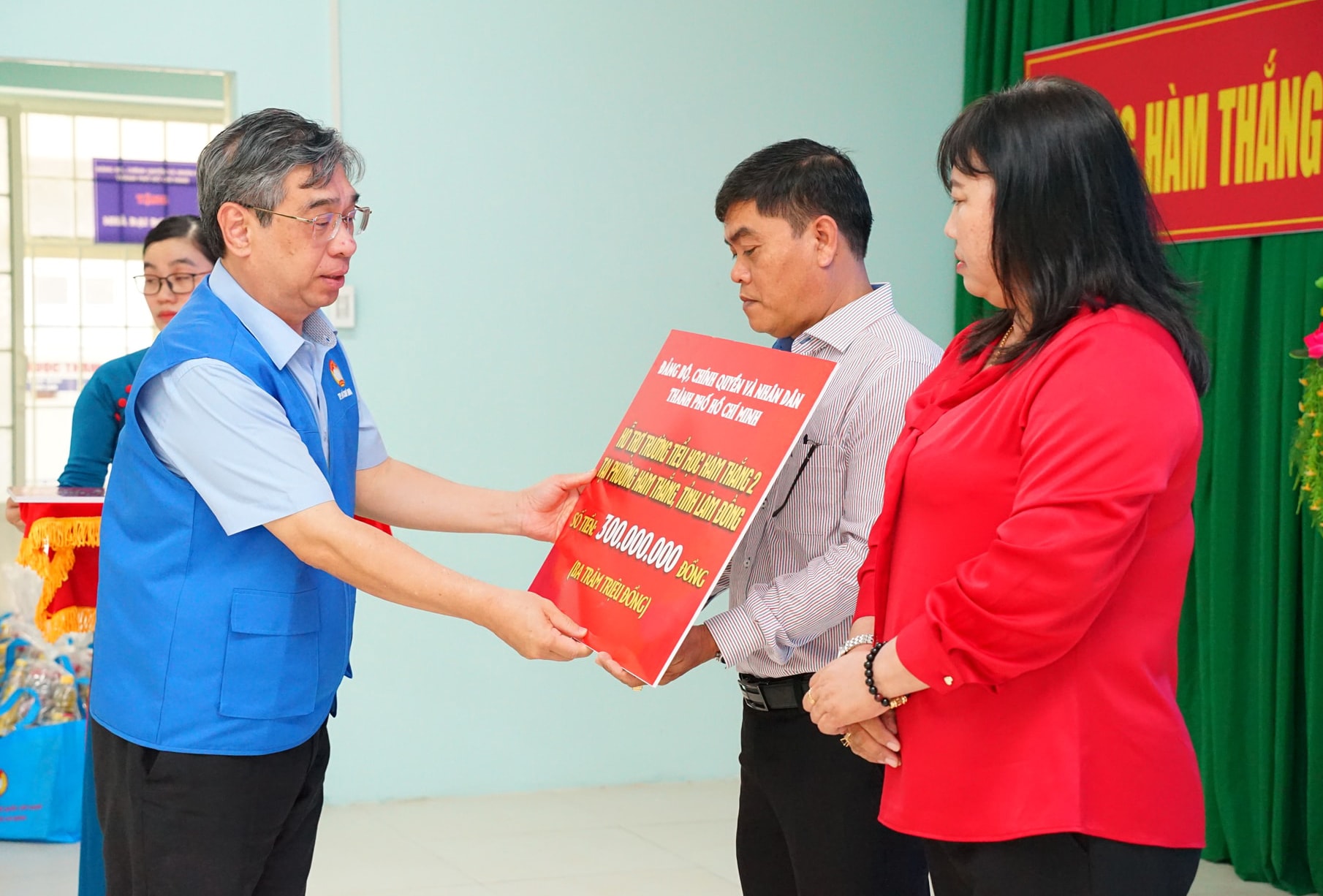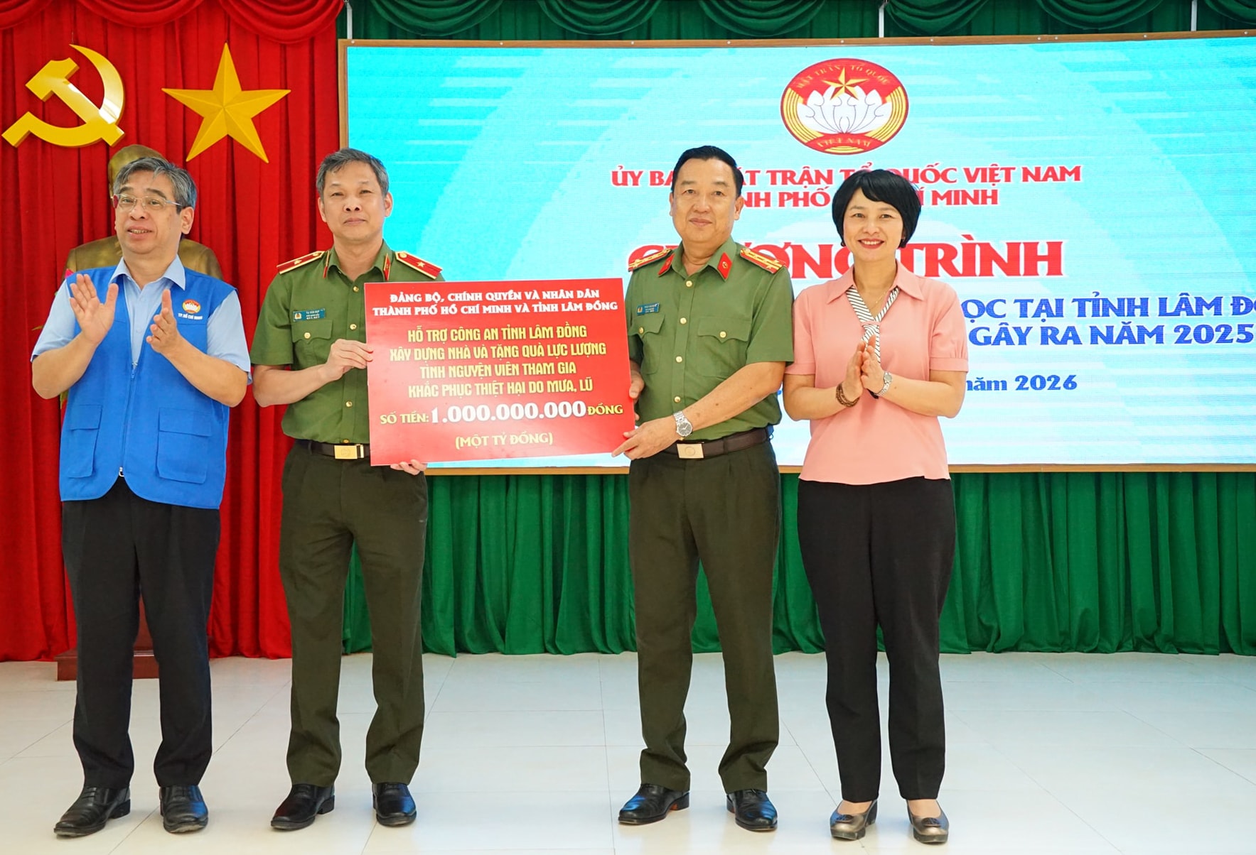 Đồng chí Nguyễn Phước Lộc, Phó Bí thư Thành ủy, Chủ tịch Ủy ban MTTQ Việt Nam TP. Hồ Chí Minh trao tặng 10 tỷ đồng cho tỉnh Lâm Đồng