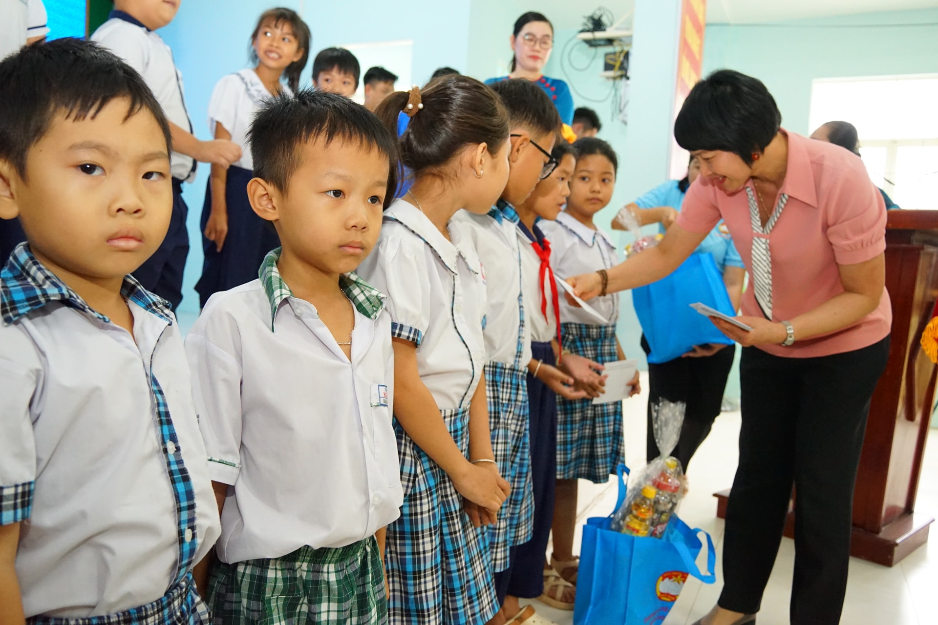 Tặng quà cho các em học sinh Trường Tiểu học ở Hàm Thắng (Lâm Đồng)