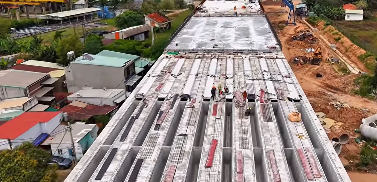 Theo cập nhật từ nhà thầu, tính đến ngày 14-12, phần cầu cạn có khối lượng đạt khoảng 90%. Trong ngày cuối cùng trước thời hạn, nhà thầu sẽ hợp long nhịp dầm cuối cùng. Về phần đường, khoảng ngày 16 hoặc 17-12, nhà thầu sẽ thảm bê tông nhựa mặt các cầu trên tuyến, sau đó sẽ thảm nhựa mặt đường suốt tuyến. Đơn vị thi công tự tin bảo đảm tiến độ thông xe kỹ thuật đoạn hơn 14,7km vào ngày 19-12-2025.