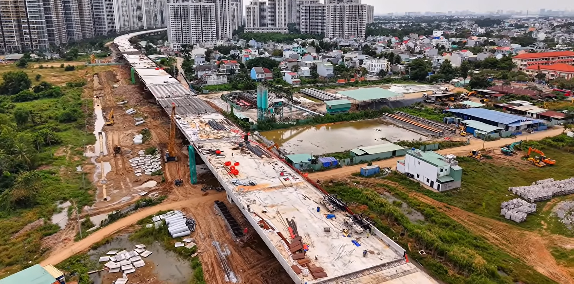 Khi đoạn đường dẫn này được gác dầm, hơn 17km đường trên cao của dự án đường Vành đai 3 thành phố Hồ Chí Minh sẽ thông tuyến (dự kiến vào cuối năm 2025). Ảnh: Đình Võ.
