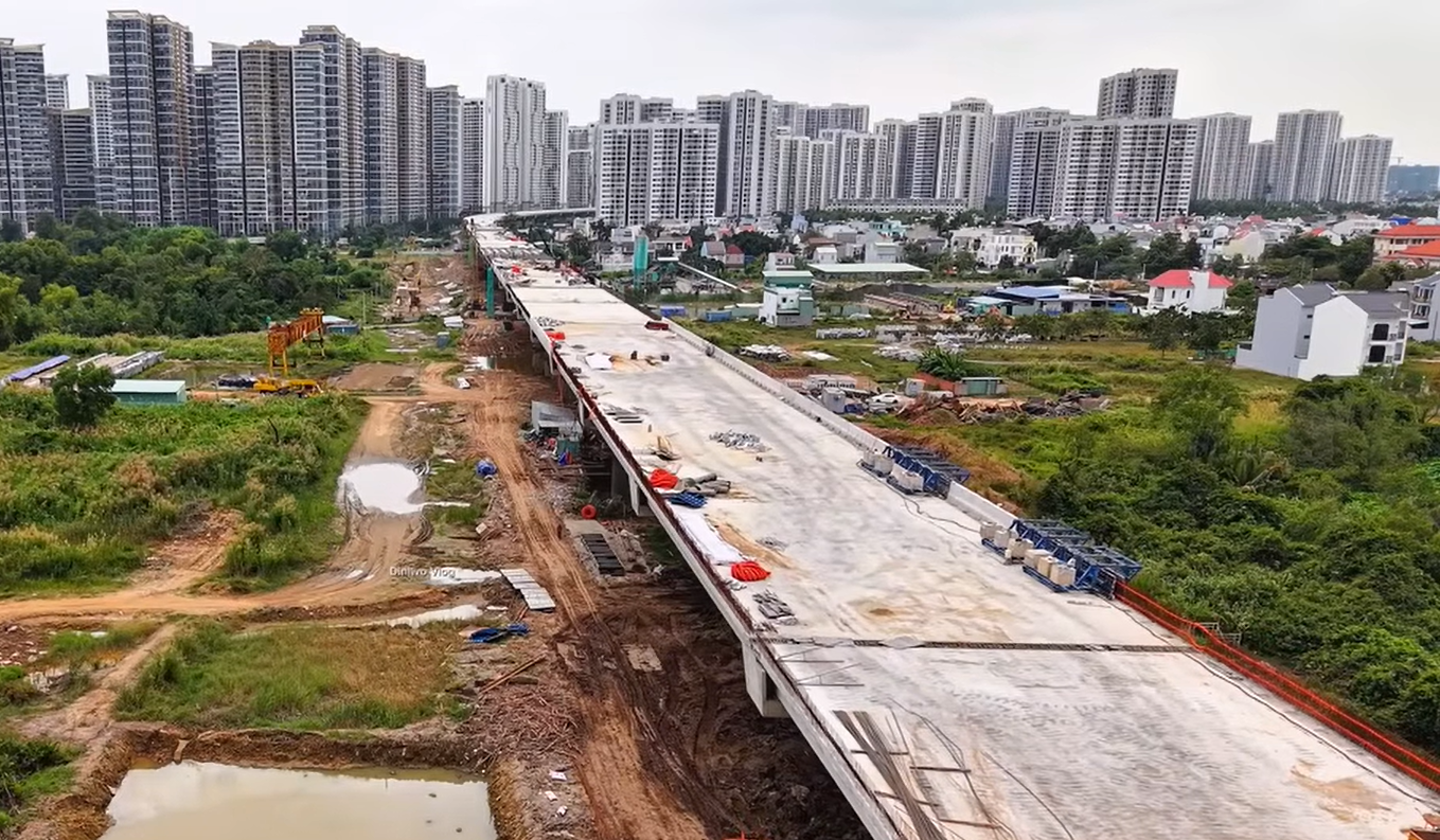 Hơn 90% phần mặt cầu cạn của 14,7km đường Vành đai 3 trên cao thành phố Hồ Chí Minh đã được nối liền. Ảnh: ĐÌnh Võ.