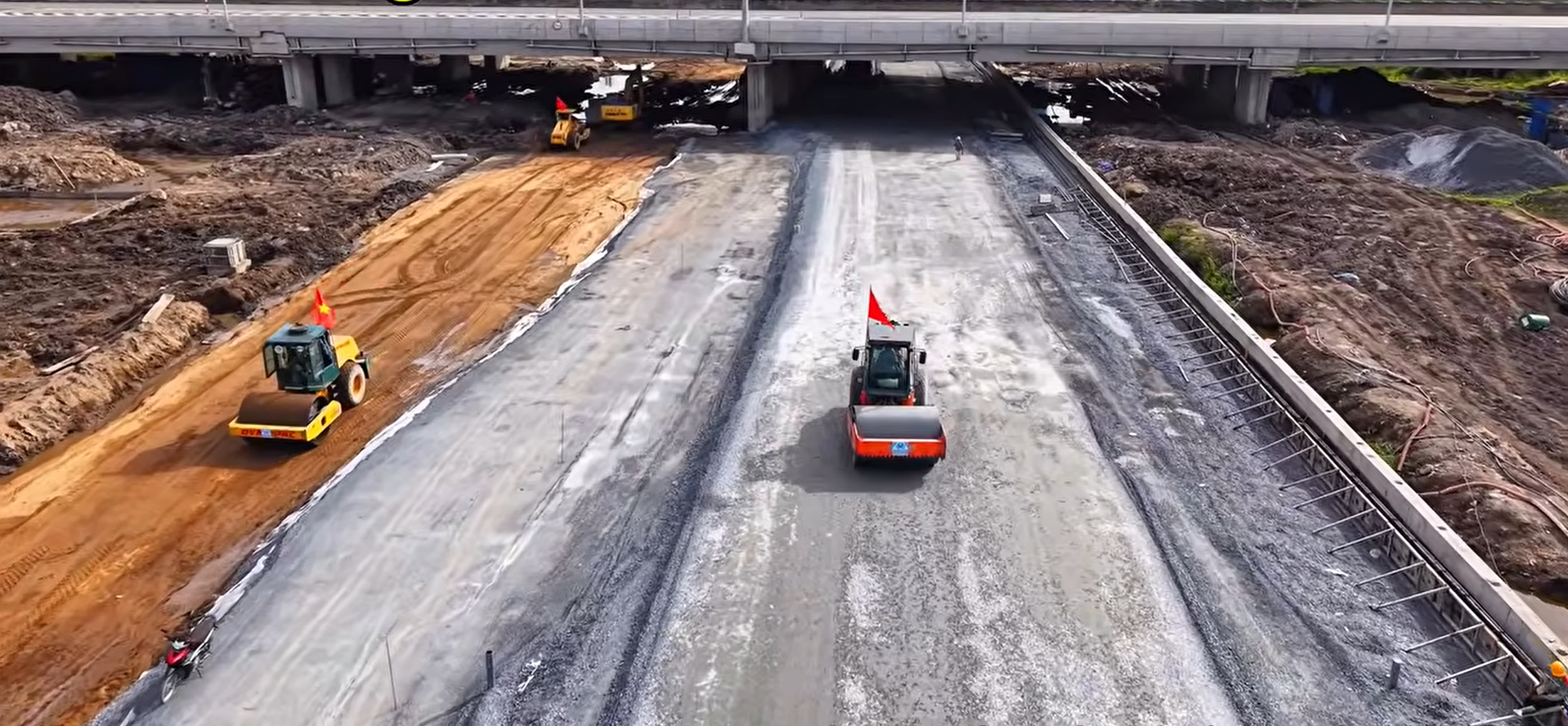 Nhà thầu quyết tâm hoàn thiện phần mặt đường này vào ngày 19-12-2025, sau đó sẽ trải nhựa. Ảnh: Đình Võ