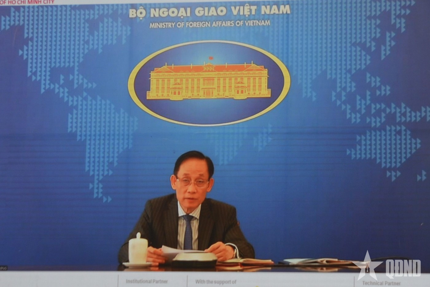 Bộ trưởng Bộ Ngoại giao Lê Hoài Trung phát biểu trực tuyến.