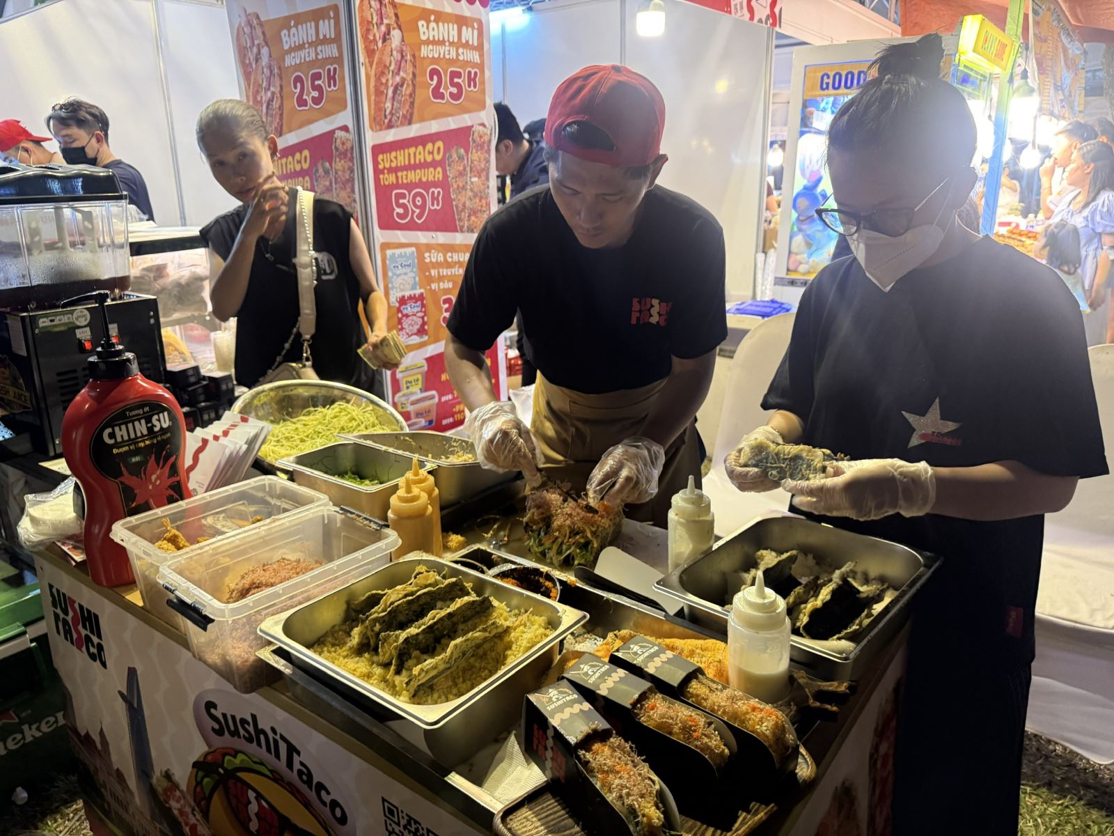 Càng về khuya, lượng khách đến với Lễ hội Bánh mì Việt Nam càng đông.