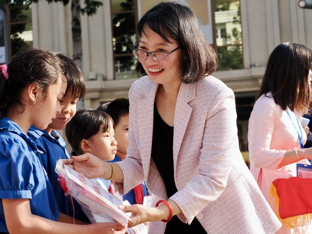 Phó Chủ tịch UBND thành phố Trần Thị Diệu Thúy trao học bổng hiếu học cho học sinh phường Sài Gòn