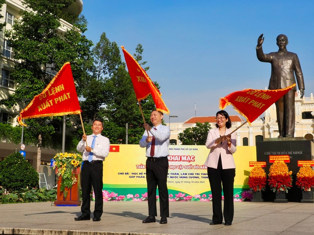 Sáng 1/10, tại phố đi bộ Nguyễn Huệ, UBND TP. Hồ Chí Minh tổ chức khai mạc Tuần lễ hưởng ứng học tập suốt đời năm 2025 với chủ đề “Học để phát triển bản thân, làm chủ tri thức và công nghệ, góp phần xây dựng đất nước hùng cường, thịnh vượng”.