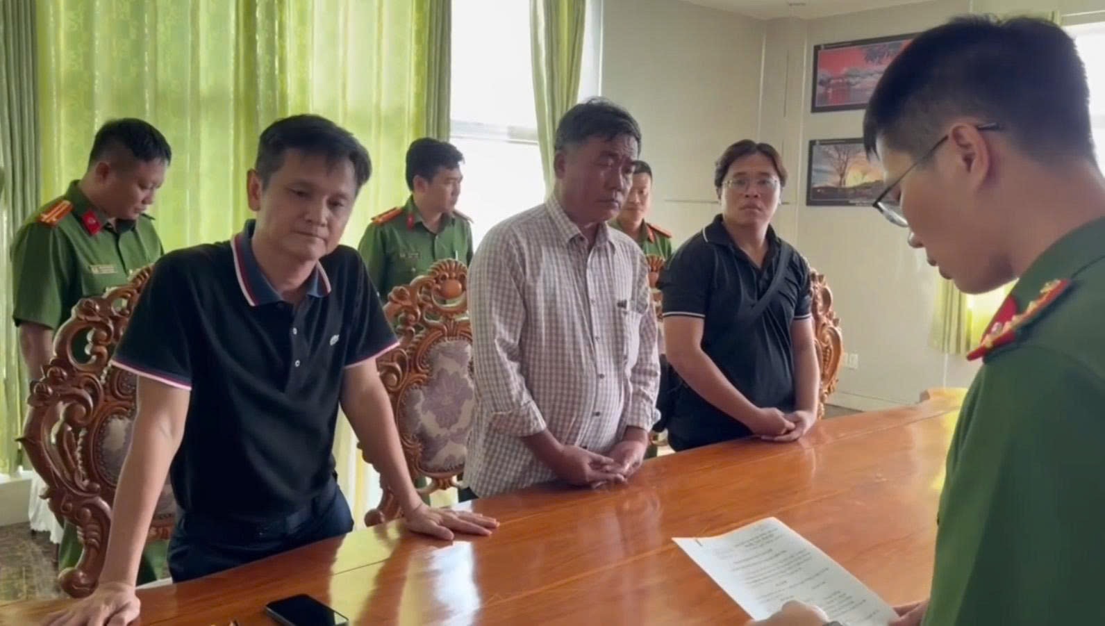Cơ quan điều tra tiến hành tống đạt quyết định tố tụng đối với các đối tượng. Ảnh công an cung cấp