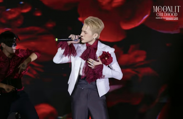 Ca sĩ J97 (Trịnh Trần Phương Tuấn) trình diễn một sáng tác có ngôn từ phản cảm trên sân khấu chương trình "Moonlit Childhood 2025" tối 16/10/2025 tại Hà Nội.