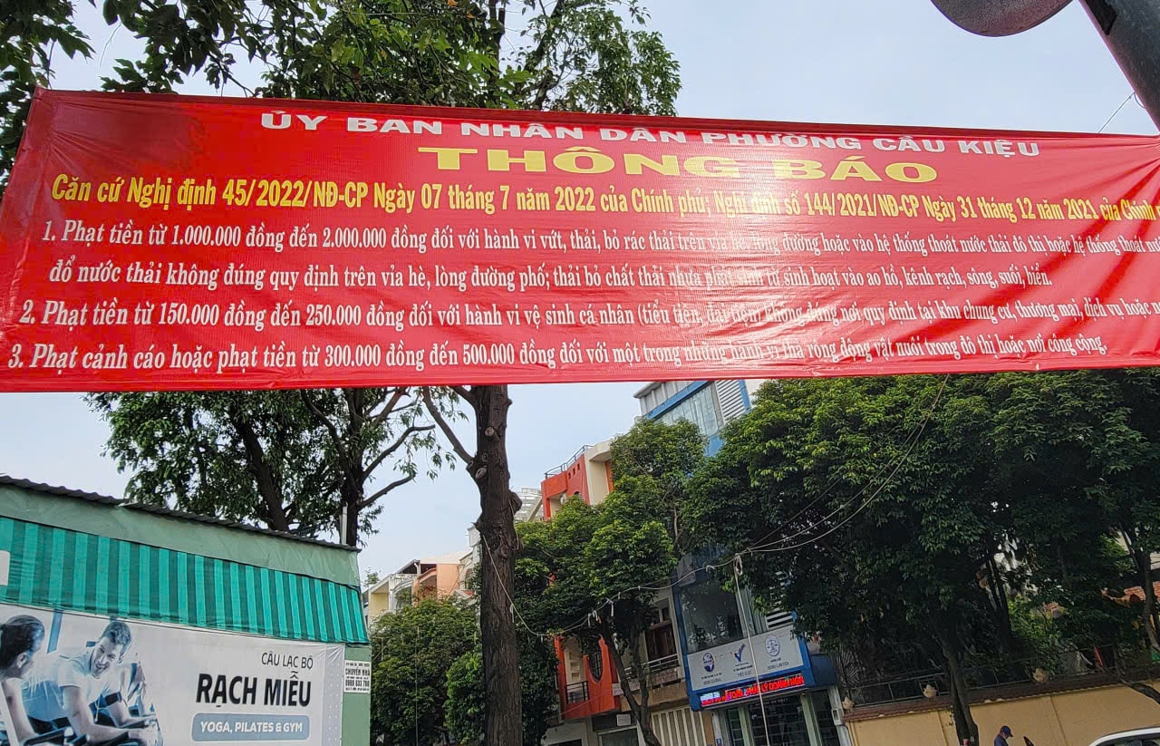Nhiều phường treo các thông tin về xử phạt vi phạm hành chính. Trong ảnh là thông báo của UBND phường Cầu Kiệu. Ảnh: Quang Phương