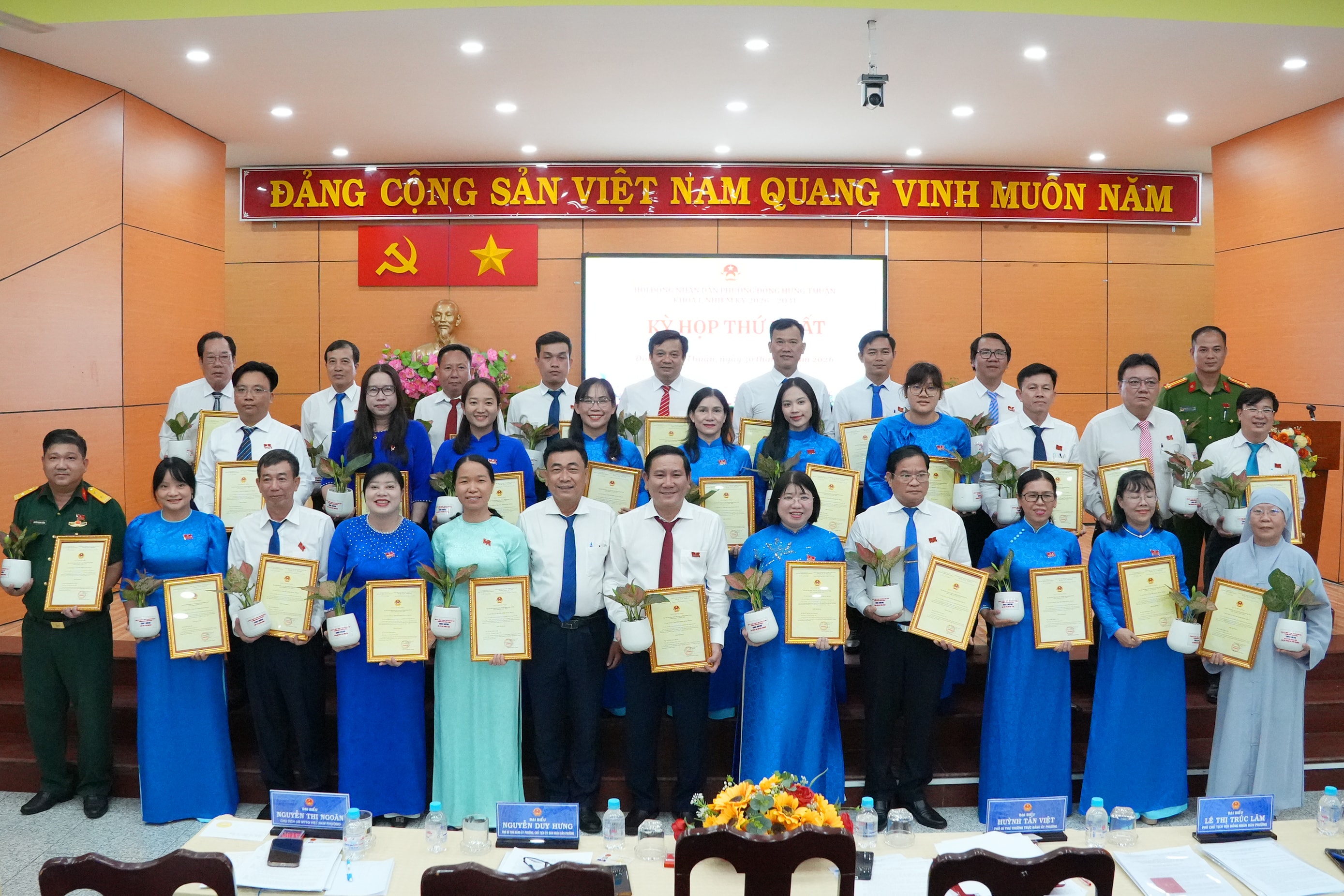 Các đại biểu HĐND phường Đông Hưng Thuận (TP. Hồ Chí Minh) nhiệm kỳ 2026 – 2031 nhận giấy chứng nhận đại biểu