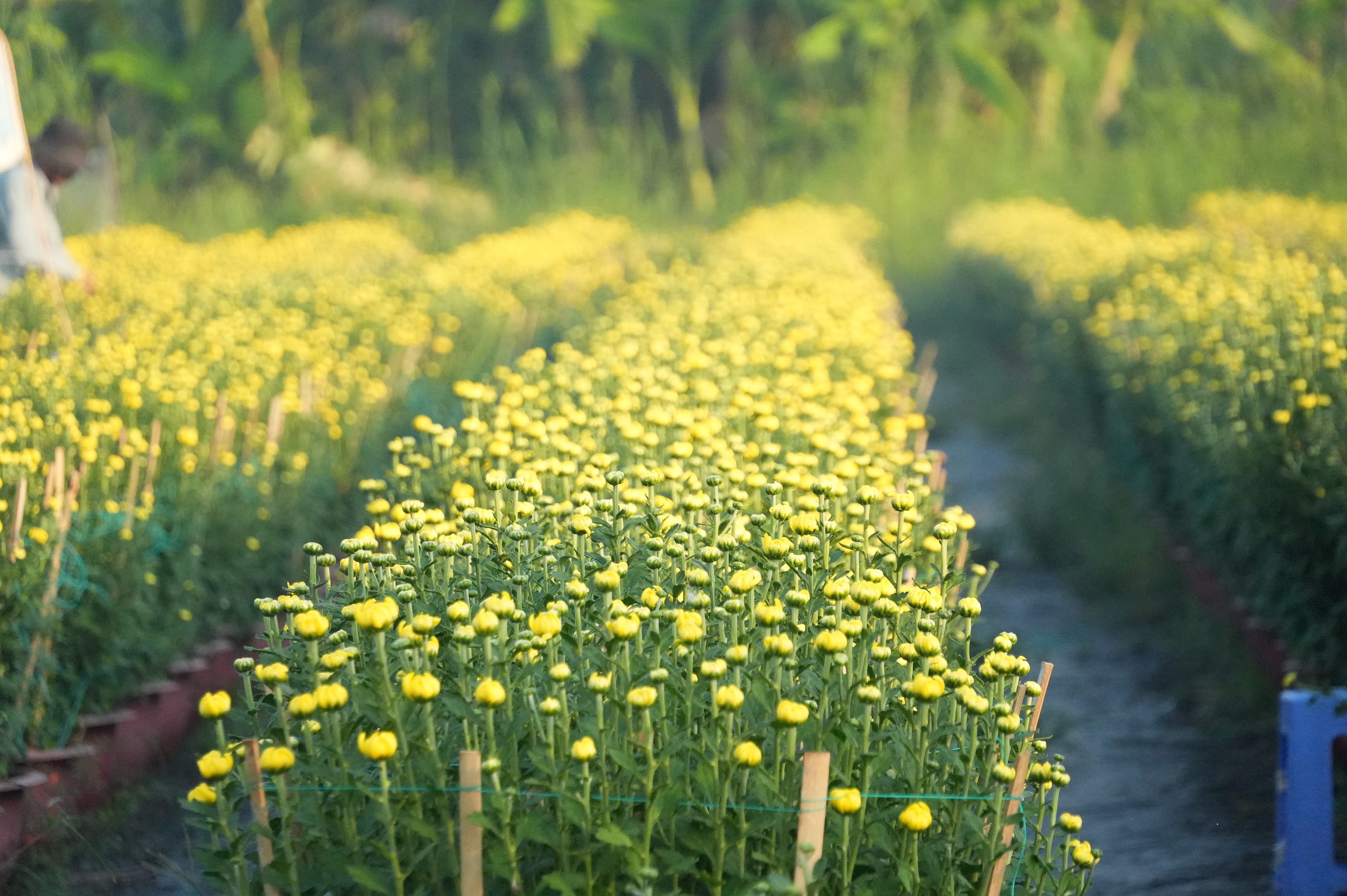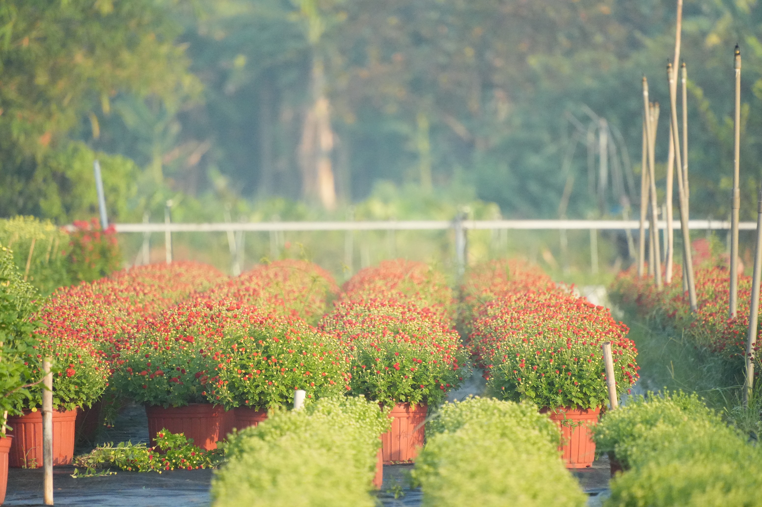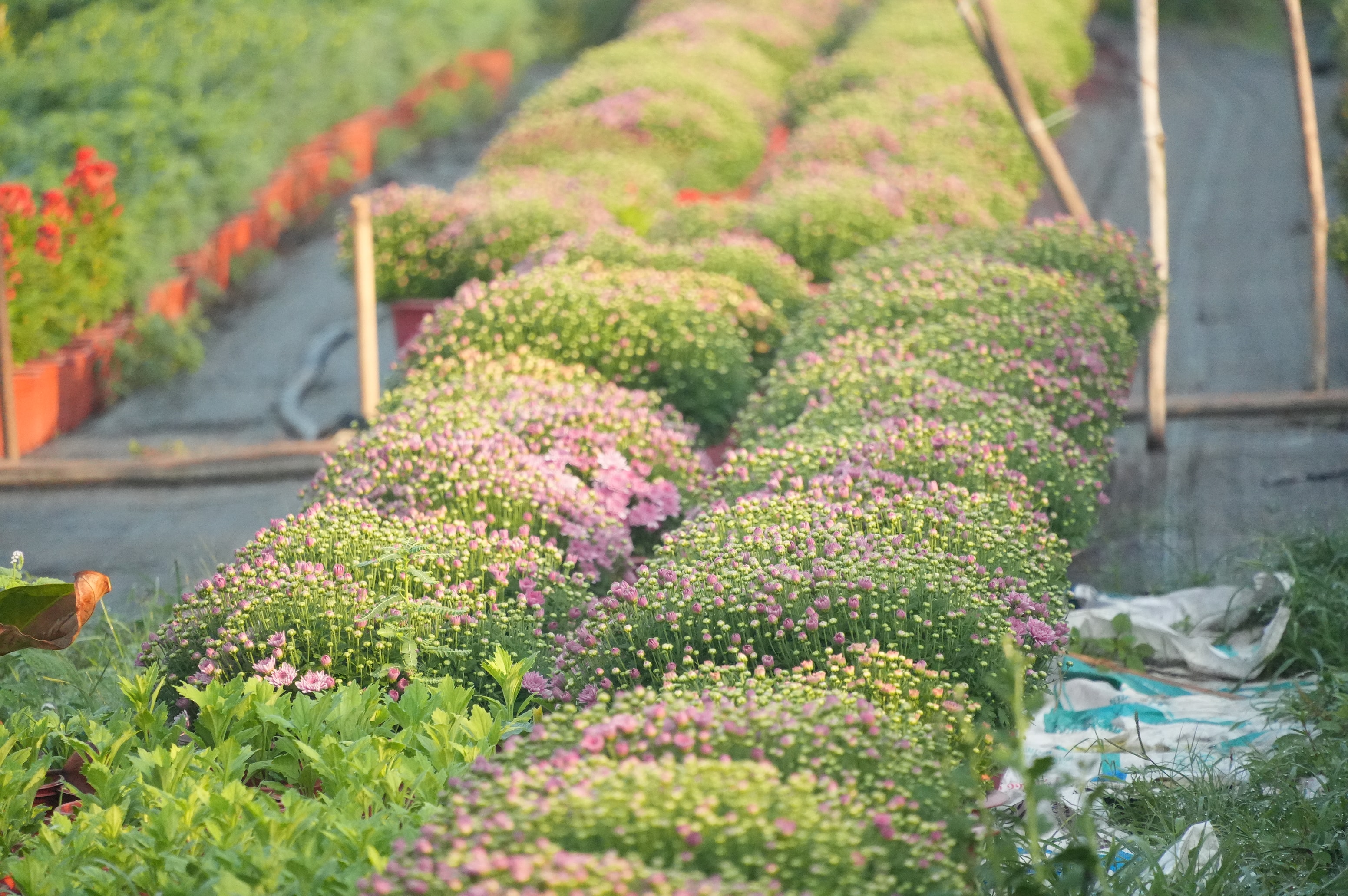 Từ sáng sớm người dân đã có mặt tại vườn để chăm sóc hoa để kịp tiến độ mùa vụ tết